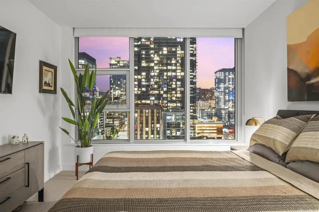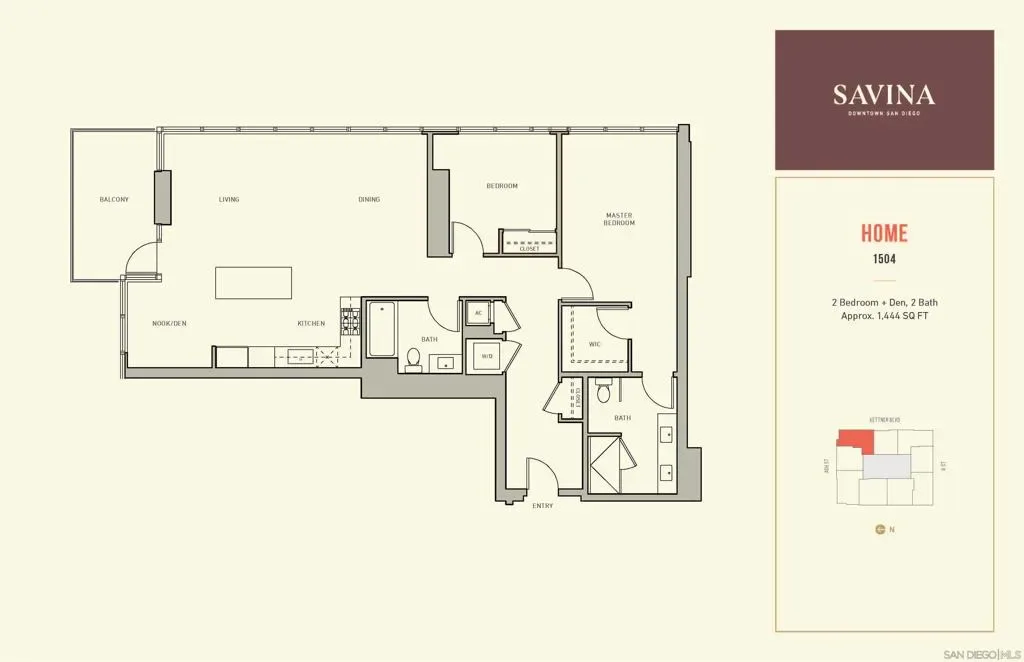 Welcome to Residence 1504 at Savina, Downtown San Diego’s premier luxury high-rise ideally located just steps from the waterfront and vibrant Little Italy. Positioned on the 15th floor, this northeast corner home enjoys sweeping city skyline views with a dynamic urban perspective. From this vantage point, you also capture a surprisingly impressive glimpse of the bay to the west, creating a beautiful balance of city energy and water views from nearly every room. Spanning approximately 1,444 sqft, this 2BR/2BA + den/nook residence features an open-concept great room, hardwood flooring, power Lutron shades (manual blackout shades in the primary bedroom), and generous storage. The spacious primary suite includes a large walk-in closet, while the kitchen and living areas flow seamlessly for comfortable daily living and entertaining. The home is presented in pristine, move-in-ready condition. Savina residents enjoy over 24,000 sqft of resort-style amenities including a lobby with concierge, business lounge, state-of-the-art fitness center with outdoor yoga terrace, spa with sauna and steam room, and a pool terrace with cabanas, fire features, and communal dining areas. Additional amenities include a social lounge with chef’s kitchen and billiards, pet retreat and dog washing station, bike tune-up station, EV charging, and secure resident access.