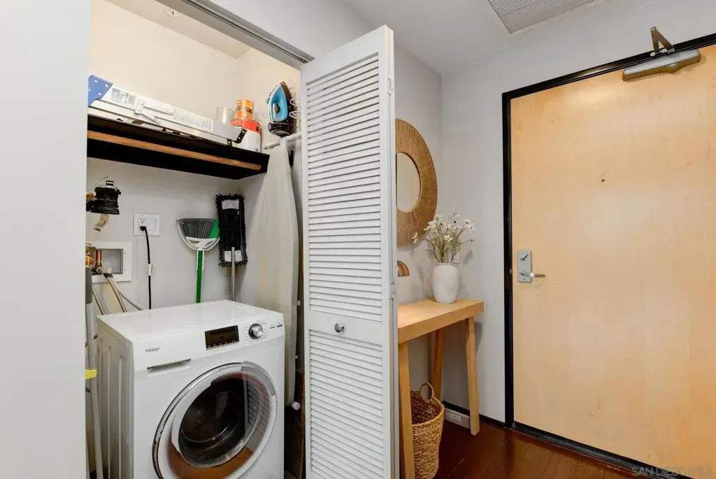 Experience the ultimate urban lifestyle at Solara Lofts, perfectly positioned between the historic charm of Cortez Hill and the vibrant culinary scene of Little Italy. This sleek, modern studio is the epitome of functional city living, offering a versatile open-concept floor plan that lives larger than its footprint. The unit features floor-to-ceiling windows with expansive city views, a kitchen featuring rare gas cooking, and a built-in Murphy bed that seamlessly transitions the space from a professional daytime suite to a cozy evening retreat. For the ultimate “move-in ready” experience, the unit is available to be sold fully furnished. Convenience is key with an in-unit washer/dryer, a dedicated storage unit, and an assigned parking space. What truly distinguishes Solara Lofts is its comprehensive wellness and social suite, tailored for an active downtown lifestyle. Residents benefit from a fully equipped fitness center, a soothing sauna, and private massage rooms, alongside the only indoor racquetball court in a downtown residential building. When hosting, the community lounge offers pool tables and—the rarest find in Downtown San Diego—secured guest parking for your visitors. Whether you’re a first-time buyer looking for a stylish primary residence or an investor seeking a high-demand property near the Mercato farmers market and Balboa Park, this unit delivers. Walk to San Diego’s best dining, grab a coffee in the Piazza della Famiglia, and return home to a boutique building that balances historic soul with modern utility.