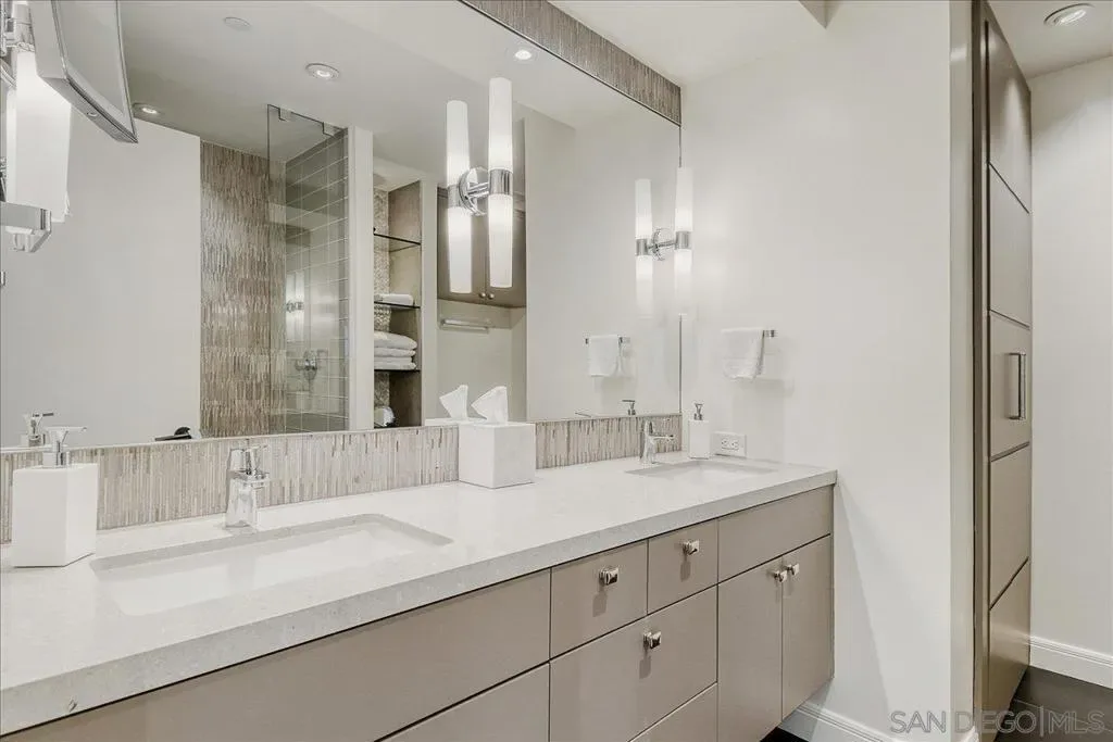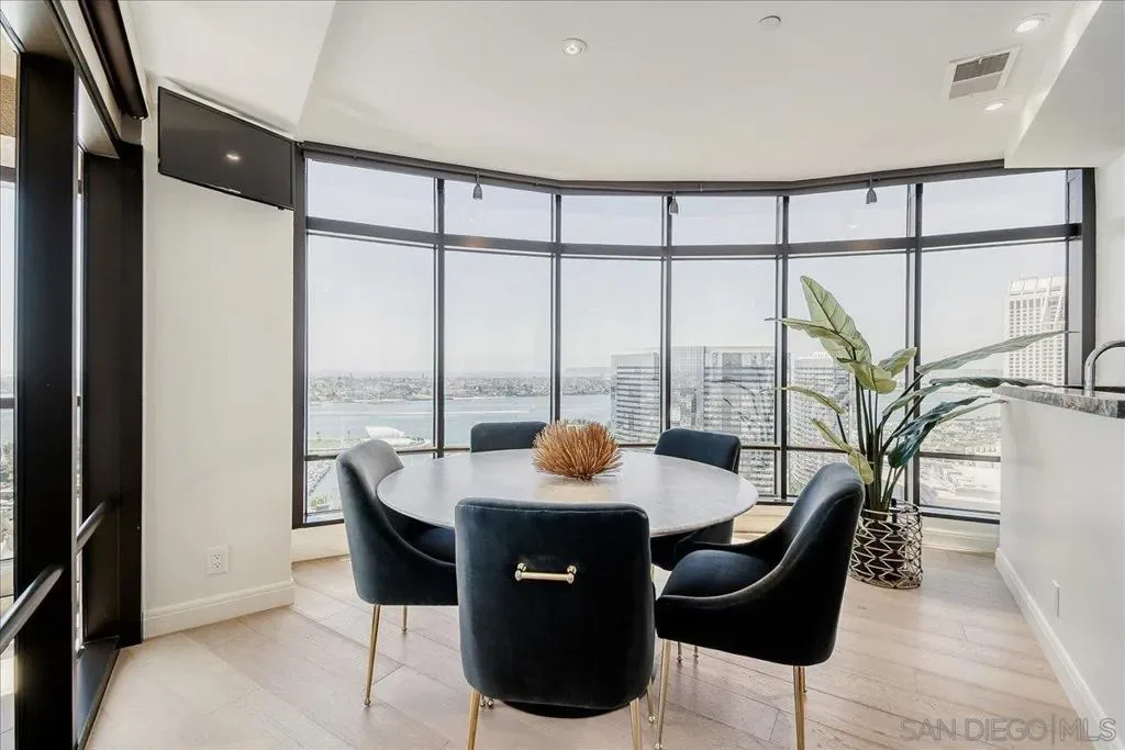 Welcome to the iconic Harbor Club, featuring this exquisitely upgraded 2-bedroom, 2-bath residence in a highly sought-after bubble unit layout. Designed with a focus on elegance and comfort, the interior showcases high-end, refined finishes, thoughtfully curated upgrades, and automatic blackout shutters throughout for both privacy and convenience. Expansive windows frame breathtaking panoramic views of the downtown skyline, The Rady Shell at Jacobs Park, and across the bay to Coronado. Located in the prestigious Marina District, this residence offers effortless access to the waterfront, premier dining, and San Diego’s most vibrant attractions. Harbor Club residents enjoy world-class amenities including 24-hour concierge, an elegant clubhouse, resort-style pool and spa, and inviting outdoor fire features delivering a truly elevated urban living experience.