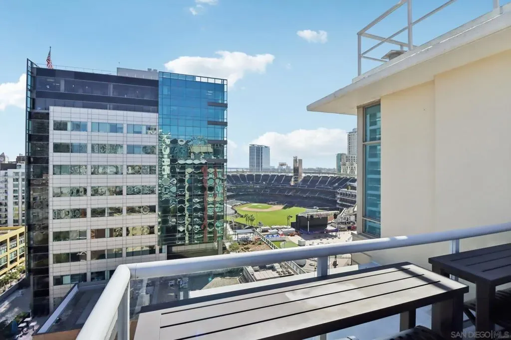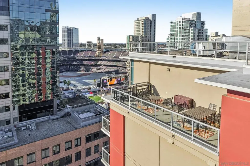Step into a bright and inviting 1-bed, 1-bath condo in Diamond Terrace, one of East Village’s most vibrant addresses. Floor-to-ceiling windows fill the home with natural light and frame views of the city, while the private balcony overlooks Petco Park, offering a front-row seat to the energy of the ballpark. Imagine enjoying morning coffee above the neighborhood or unwinding in the evening as the stadium lights glow and the sounds of the city drift below. Inside, the open living space flows into a kitchen with stone countertops and stainless steel appliances, with in-unit laundry and central air adding everyday comfort and convenience. Enjoy a spacious primary suite with access to the oversized bath from both the bedroom and living area. Diamond Terrace rises 14 stories with 113 residences and offers a secure lobby, underground parking, a fitness center, and a top-floor community room with an outdoor terrace and BBQ area, perfect for relaxing or gathering with friends while taking in sweeping views of the skyline. Located just steps from Petco Park, Gallagher Square, the Gaslamp Quarter, and countless restaurants, cafes, and nightlife options, this home places you in the heart of downtown San Diego. More than just a condo, it offers a lifestyle where ballgames, concerts, dining, and city life are all part of the everyday experience.