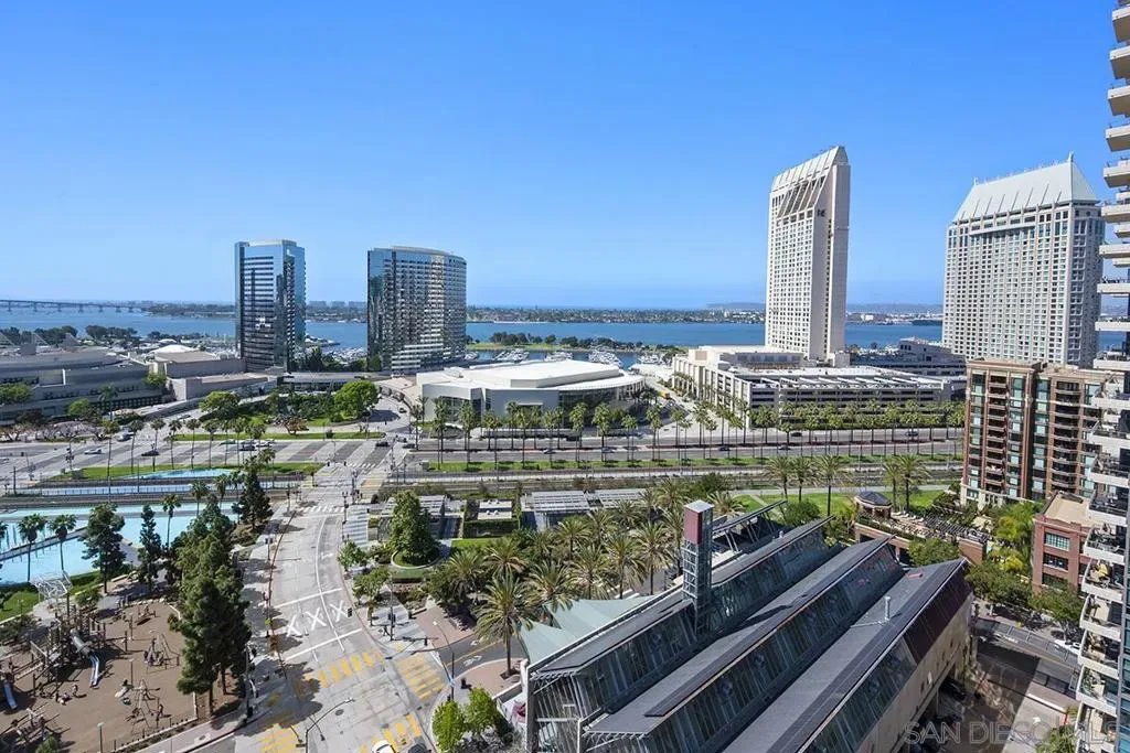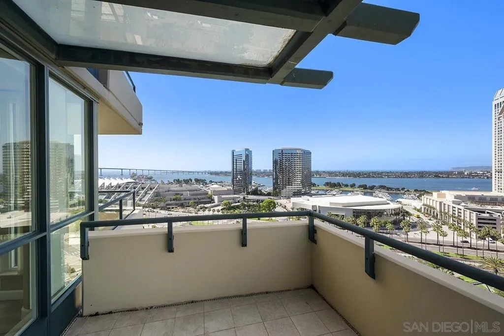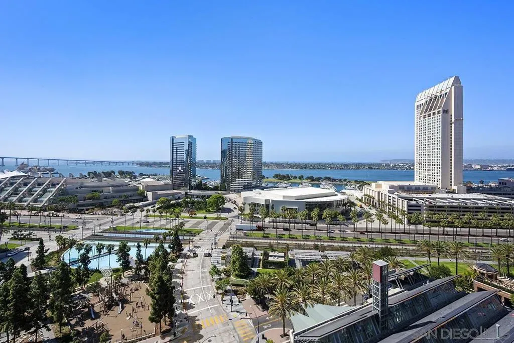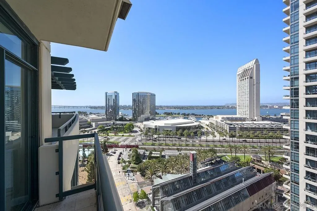 Few addresses in Downtown San Diego deliver this kind of perspective. Positioned on the 18th floor of Horizons, this southwest corner residence offers sweeping views of the bay, ocean, Point Loma, and Coronado that stretch as far as the eye can see. Whether you’re watching sailboats drift across the water or the city lights come alive at dusk, the scenery here changes by the hour and never gets old. Three rare balconies – one measuring 25×10 – are among the home’s defining features, accessible from nearly every room, including the primary bedroom, and offering effortless access to breathtaking views. Floor-to-ceiling windows fill the open-concept living space with natural light throughout the day, while easy-care flooring and a fireplace create a warm, grounded atmosphere. The well-appointed kitchen features stainless appliances, generous cabinetry, and recessed lighting, a setup that works equally well for quiet weeknight dinners and larger gatherings. The primary suite connects to the main balcony and has its own private outdoor space, a rare bonus at this level. The ensuite bath includes dual vanity, soaking tub, and step-in shower. The second bedroom functions beautifully as a guest room or a dedicated home office with an inspiring backdrop. Two side-by-side parking spaces near the elevators and a storage unit complete the package. This is Marina District living at its finest, where the views are genuinely part of the lifestyle. The Horizons boasts an unbeatable location in the Marina District, placing you steps from the New Children’s Museum, the scenic Martin Luther King Jr. Promenade, and Seaport Village. And with both a children’s park and a dog park right behind the community, fun is always within easy reach for kids and furry friends alike. Resort-style amenities include a pool, spa, fitness center, concierge, security, billiard room, conference room, and guest parking. Convenience is built in, with an array of retailers just an elevator ride away—a bank, tanning salon, dry cleaners, Postal Annex, and a coffee/sandwich shop. Plus, you’re within walking distance of bus and trolley lines, top-rated restaurants, shopping, and a 24-hour Ralphs Signature Market just around the corner.