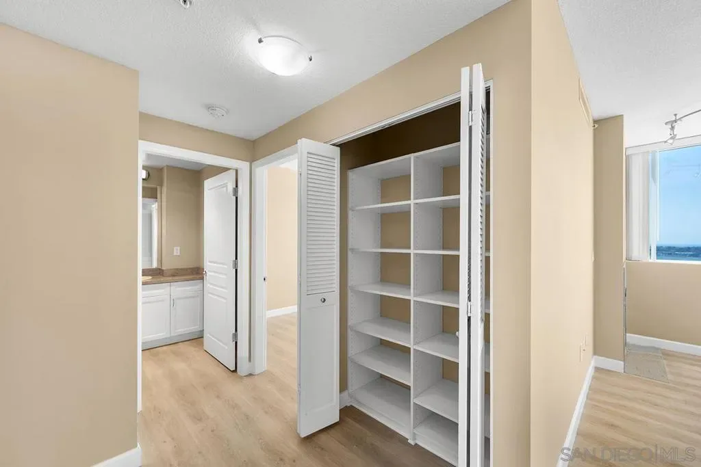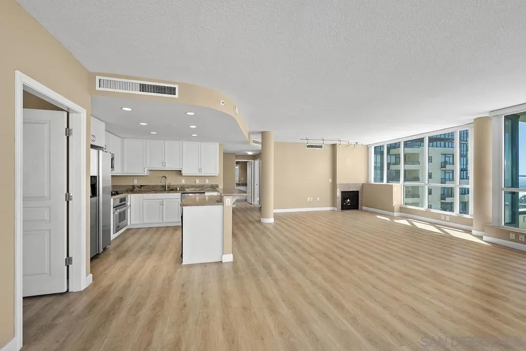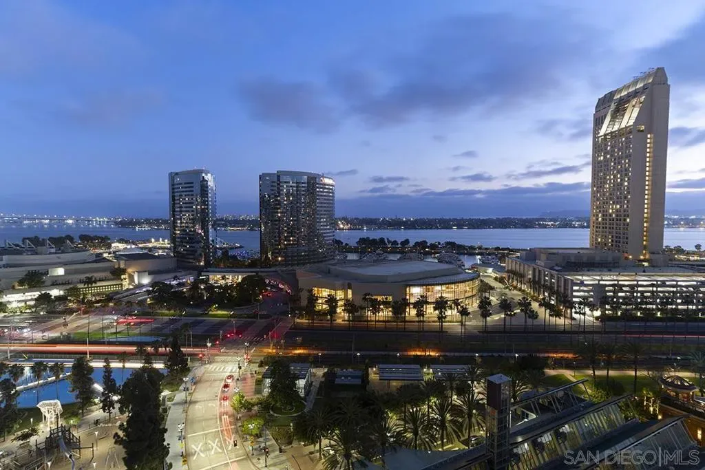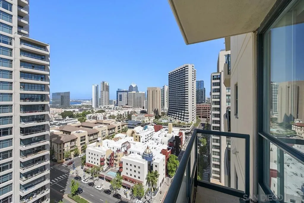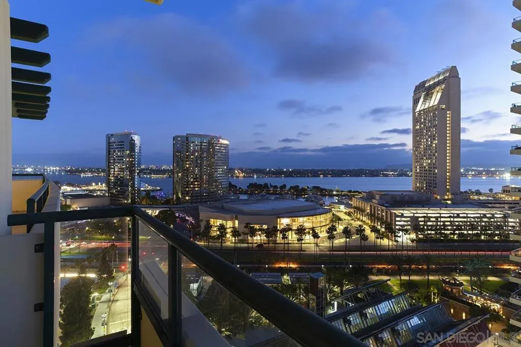 Few addresses in Downtown San Diego deliver this kind of perspective. Positioned on the 18th floor of Horizons, this southwest corner residence offers sweeping views of the bay, ocean, Point Loma, and Coronado that stretch as far as the eye can see. Whether you’re watching sailboats drift across the water or the city lights come alive at dusk, the scenery here changes by the hour and never gets old. Three rare balconies – one measuring 25×10 – are among the home’s defining features, accessible from nearly every room, including the primary bedroom, and offering effortless access to breathtaking views. Floor-to-ceiling windows fill the open-concept living space with natural light throughout the day, while easy-care flooring and a fireplace create a warm, grounded atmosphere. The well-appointed kitchen features stainless appliances, generous cabinetry, and recessed lighting, a setup that works equally well for quiet weeknight dinners and larger gatherings. The primary suite connects to the main balcony and has its own private outdoor space, a rare bonus at this level. The ensuite bath includes dual vanity, soaking tub, and step-in shower. The second bedroom functions beautifully as a guest room or a dedicated home office with an inspiring backdrop. Two side-by-side parking spaces near the elevators and a storage unit complete the package. This is Marina District living at its finest, where the views are genuinely part of the lifestyle. The Horizons boasts an unbeatable location in the Marina District, placing you steps from the New Children’s Museum, the scenic Martin Luther King Jr. Promenade, and Seaport Village. And with both a children’s park and a dog park right behind the community, fun is always within easy reach for kids and furry friends alike. Resort-style amenities include a pool, spa, fitness center, concierge, security, billiard room, conference room, and guest parking. Convenience is built in, with an array of retailers just an elevator ride away—a bank, tanning salon, dry cleaners, Postal Annex, and a coffee/sandwich shop. Plus, you’re within walking distance of bus and trolley lines, top-rated restaurants, shopping, and a 24-hour Ralphs Signature Market just around the corner.
