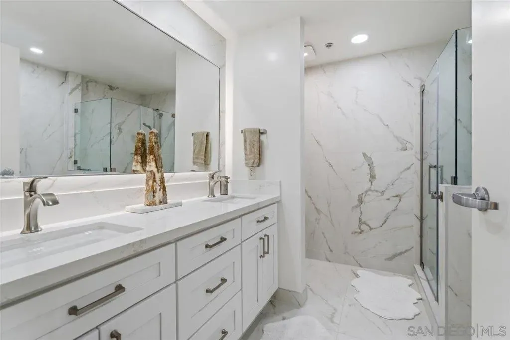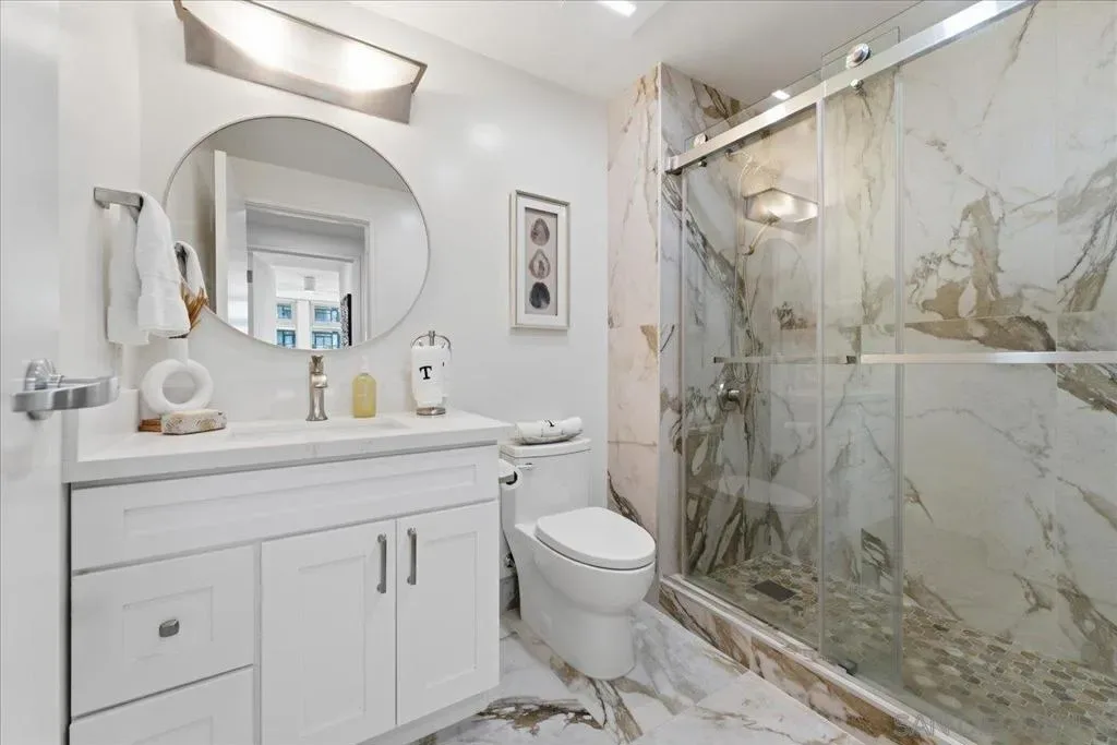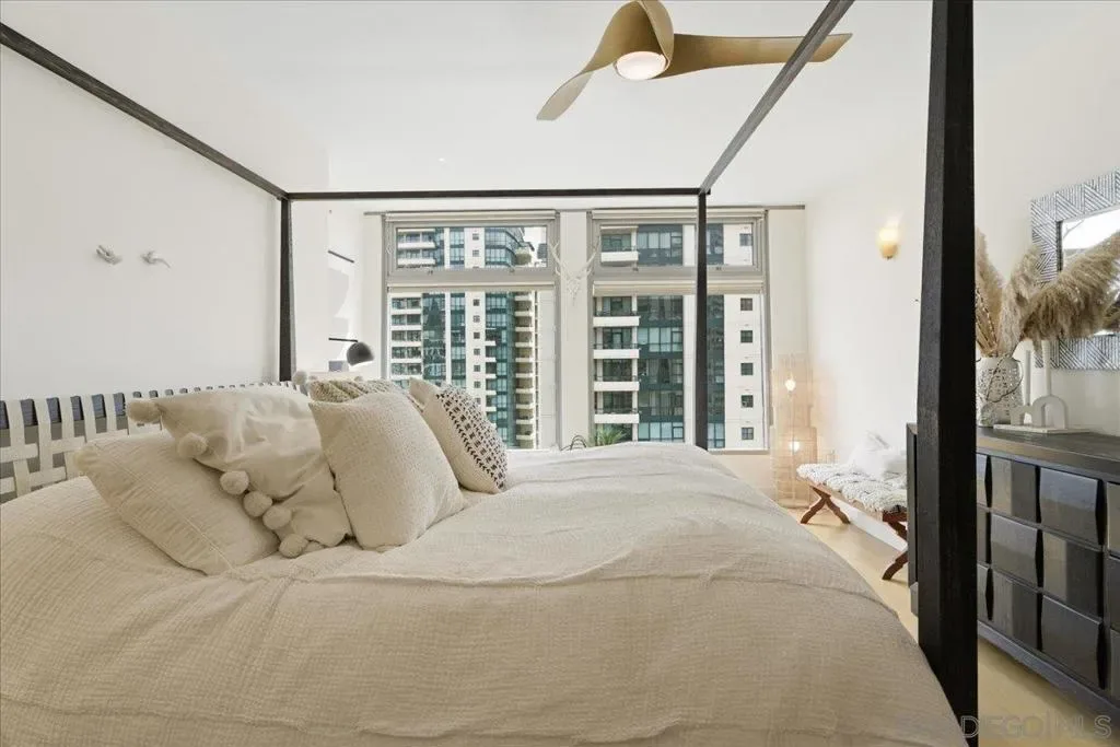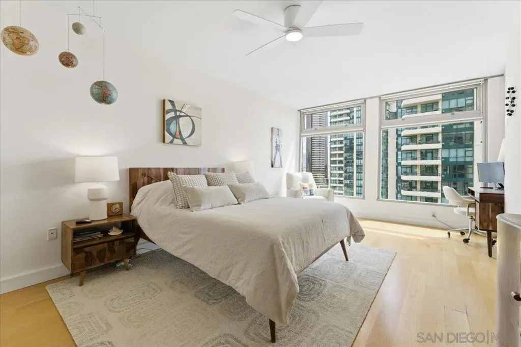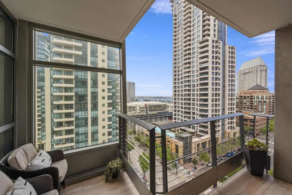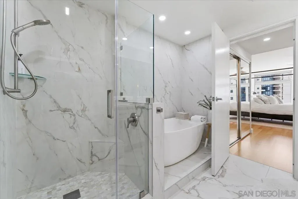Experience elevated urban luxury in the heart of Downtown San Diego’s prestigious Marina District at the highly sought-after Renaissance – South Tower. This impeccably remodeled 12th-floor residence offers a rare 3-bedroom, 3-bath floor plan with water views and expansive floor-to-ceiling windows. The completely reimagined chef’s kitchen is a true showpiece, featuring rare natural granite countertops, a paneled Bosch dishwasher, paneled Sub-Zero refrigerator, and a professional-grade Hestan range. Entertain effortlessly with a custom bar area complete with Perlick double-drawer refrigerator and wine fridge. Refined upgrades continue throughout with rich maple hardwood flooring, a Samsung Frame TV paired with surround sound. Balcony perfect for indoor-outdoor living. The luxurious primary suite offers a spa-inspired retreat with a freestanding soaking tub, expanded walk-in shower, custom cabinetry, and designer fixtures. The junior suite and third bathroom have been thoughtfully remodeled with custom walk-in showers, modern vanities, premium finishes, and striking 24×48 porcelain slab tile. Additional highlights include two premium parking spaces (one extra-wide and one wide with easy access) and an oversized private storage locker with bonus space—among the largest available in the building. This is a rare opportunity to own a fully upgraded residence in one of Downtown San Diego’s most desirable luxury high-rises, just moments from the waterfront A Statement of Luxury in the Marina District. Perched high on the 12th floor of Renaissance’s coveted South Tower, this rare 3-bedroom, 3-bath masterpiece sets a new standard for downtown living. Walls of glass frame sweeping water views, flooding the home with natural light and blurring the line between cosmopolitan energy and private retreat. Completely reimagined kitchen with expanded counters draped in rare natural granite, a Bosch paneled dishwasher, Sub-Zero paneled refrigerator, and a Hestan professional power range. A custom bar with Perlick double-drawer fridge and wine fridge elevates every gathering. Maple hardwood floors lead you through spacious living areas designed for both entertaining and everyday elegance, enhanced by a Samsung Frame TV with surround sound and an exterior deck finished in maple LVP flooring. The Primary Suite is a spa-like sanctuary, boasting a freestanding soaking tub, expanded shower, custom cabinetry, and designer fixtures. The Junior Suite and third bath echo the same level of sophistication with sleek custom showers, new vanities, premium fixtures, and dramatic 24×48 porcelain slab tile. Every detail speaks of convenience and exclusivity: two prime parking spaces (one extra-wide, one wide—both with easy access) and a massive storage locker with bonus space, unmatched in the building. This is more than a home, it’s a statement!