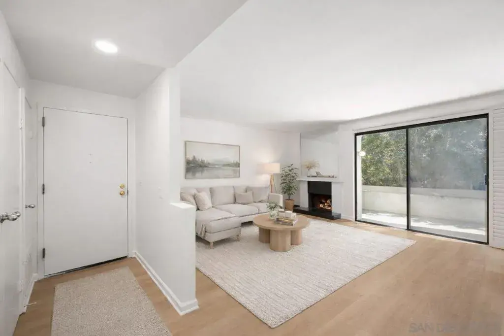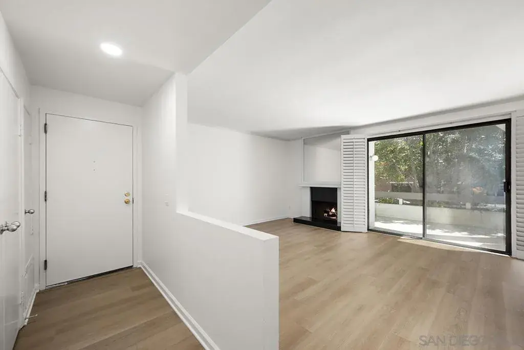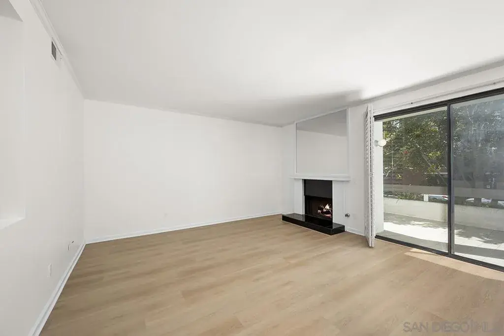 Welcome to this rare, single-level ground-floor residence with 2 bedrooms, 2 bathrooms AND 2 patios! With a bright and open layout and sunlight streaming in from every angle, it’s the kind of home that just feels good the moment you step inside. Enjoy the “Bentwood Tan” luxury vinyl plank flooring throughout, cozy ambient fireplace, and a “refreshed” kitchen with sleek quartz counter, top-notch Samsung appliances, refaced cabinetry and newer fixtures. The spacious primary suite offers dual closets and an ensuite bath with a step-in shower, while both bedrooms open directly to the patios—perfect for seamless indoor-outdoor living. Other features include LED lighting, a bonus storage closet on the patio, a secure parking space, and private storage cabinet. All this in Park Row, one of Downtown’s most charming low-rise communities, known for its lush landscaping, fantastic amenities, and unbeatable walkability. And yes—low HOA dues, too! There is no other development like Park Row in Downtown; beautiful garden-setting with sparkling fountains, a plethora of flowers, trees, real green grass and courtyards to boot. With no elevators, long corridors or hallways; rather “ease of access” walk-up style residences, it offers a serene escape for those seeking the charm of urban living without the high-rise hustle. Nestled beside the historic Pantoja Park, this tranquil community invites you to stroll to The Headquarters, Seaport Village, the Gaslamp Quarter, and the scenic waterfront, with Downtown San Diego’s cultural highlights just steps away. Beautifully landscaped grounds enhance the peaceful ambiance, while amenities such as clubhouse, year-round heated pool, and spa create a relaxing retreat. Plentiful visitor parking is an added perk, and additional parking, storage options, bike storage, and an EV charging station are available through the HOA. Embrace the perfect balance of city convenience and peaceful living at Park Row—welcome home!