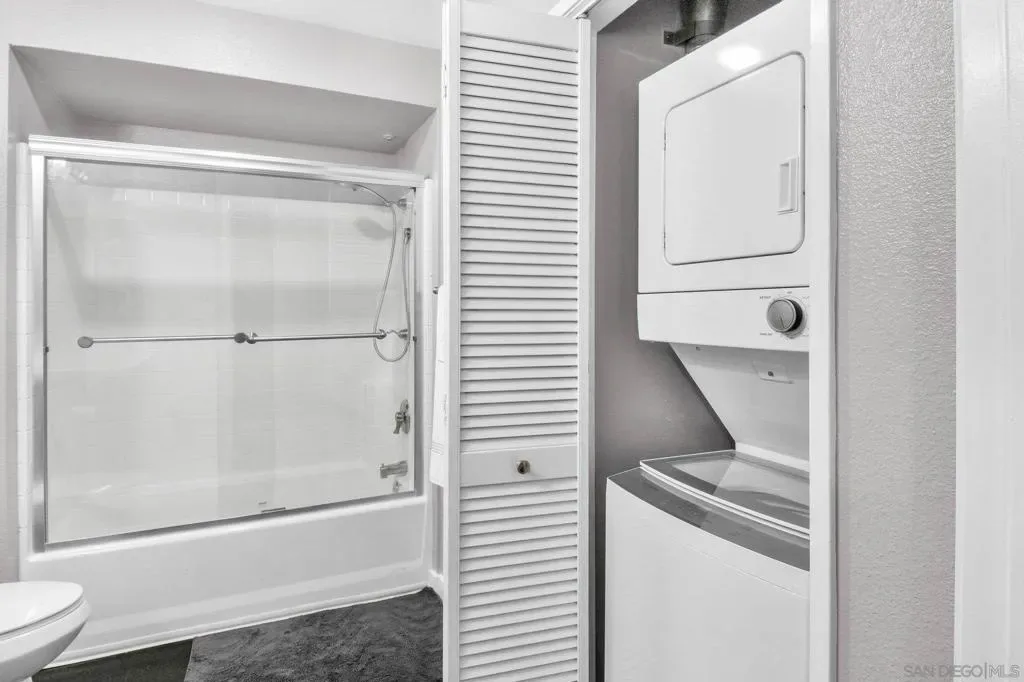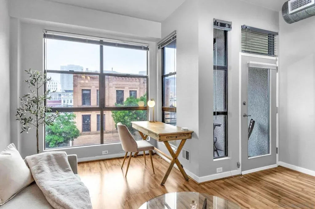 Welcome to this stylish, light-filled modern industrial 1 bedroom loft in the heart of San Diego’s vibrant Gaslamp Quarter. This beautifully updated residence features high ceilings, floor-to-ceiling windows, and an open-concept layout that fills the condo with natural light while capturing the energy of downtown living. The contemporary kitchen seamlessly opens to the spacious living area, creating an ideal space for entertaining or relaxing. Step outside to your private patio, perfect for morning coffee or evening cocktails while enjoying the lively atmosphere of the Gaslamp. Convenient in-unit laundry. The unit also includes one large assigned underground parking space. Low HOA! Enjoy access to a courtyard with BBQ area and a fitness center. Located just steps from Petco Park, the weekly Gaslamp Artisan market, waterfront, convention center, trolley, top restaurants, coffee shops, nightlife, shopping, and entertainment, this loft offers the ultimate in downtown San Diego lifestyle. VA approved.
