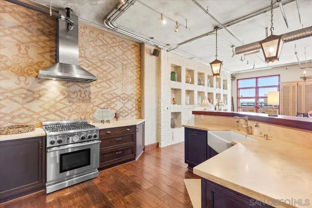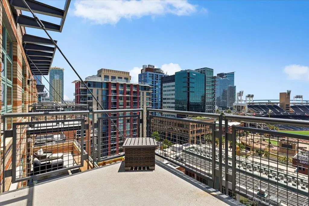 Dramatically positioned atop the cityscape, this exceptional penthouse offers an extraordinary vantage point directly overlooking home plate at Petco Park—an iconic perspective that few can claim. Encompassing 3,110 square feet, this one-of-a-kind residence is the largest in the prestigious Parkloft community, where contemporary sophistication converges with the raw elegance of loft-inspired architecture. Floor-to-ceiling windows and a sweeping 60-foot balcony unveil commanding 180-degree views of the San Diego skyline, the Coronado Bridge, and the Pacific horizon—each sunset more cinematic than the last. Inside, a grand 10-foot entry door opens to a voluminous interior defined by rich, dark-stained oak flooring and hand-applied Venetian plaster walls in warm terra cotta tones. The gourmet kitchen is both a design centerpiece and a culinary haven, featuring marble countertops, top-tier appliances, and a striking island ideal for gathering. A custom brick wall lends artistic character to the adjacent dining area, while the open-concept living space invites effortless entertaining against a backdrop of dramatic vistas. Ascend the sculptural spiral staircase—crafted with a woven metal balustrade—to the serene primary suite, complete with its own private entrance, balcony, sitting area, and a spa-inspired bath adorned with Italian terracotta tile, a soaking tub, luxuriously appointed glass shower and an expansive walk-in closet with European cabinetry. This rare and refined offering includes two ground-level, gated parking spaces—an exceptional convenience in the vibrant heart of downtown. Ideally situated within the coveted Parkloft community, residents are mere steps from the electric energy of Petco Park, the celebrated dining and nightlife of the Gaslamp Quarter, and the coastal allure of the Marina District. With effortless access to San Diego International Airport and the Santa Fe Depot, the city—and beyond—is always within easy reach. Parkloft elevates urban living with an array of premier amenities designed to enrich daily life. From the attentive concierge and serene, Zen-inspired lobby to the fully equipped fitness center and lushly landscaped courtyard ideal for relaxed gatherings, every detail is curated for both comfort and connection. Here, luxury meets lifestyle in its most sophisticated form—where modern design, urban convenience, and refined community living exist in seamless harmony. Furnishings Negotiable!