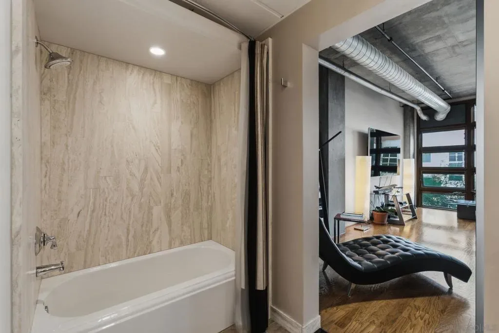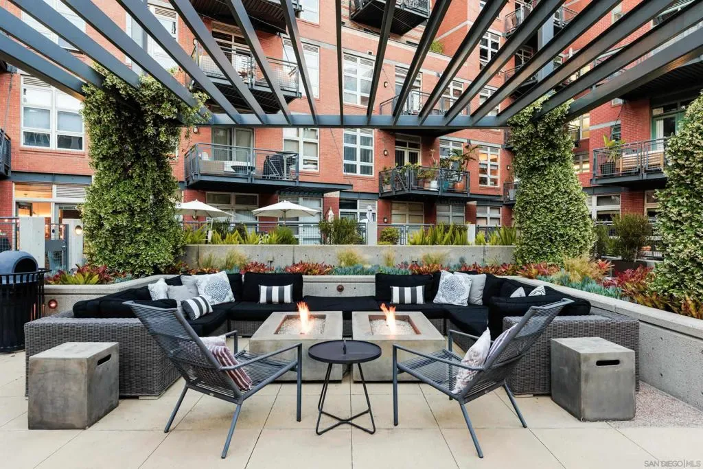 Experience elevated loft living at Parkloft, one of Downtown San Diego’s most coveted addresses in the vibrant Ballpark District. This spacious residence features soaring 10-foot ceilings, exposed ductwork, solid oak flooring and an open-concept design which captures the essence of sophisticated urban living. The expansive floor to ceiling Pella windows open up to north-facing city views and the private terrace is equipped with gas hookups, perfect for alfresco dining and entertaining. The primary retreat offers a tranquil escape, featuring an attached spa-inspired bathroom with award-winning design showcased in SD Design Magazine. Parkloft residents enjoy a well appointed fitness center; 24-hour concierge and security services; on-site management ensuring exceptional care and convenience; and a serene landscaped courtyard with ambient fire features, BBQ’s and a club house with a kitchenette which opens up to a large outdoor dining table and sets the stage for effortless outdoor entertaining. Developed by Douglas Wilson Companies (developer of Symphony Towers), Parkloft embodies the timeless sophistication of Manhattan-style loft living, with a seamless balance of historic brick craftsmanship and modern elegance. Crafted of poured-in-place concrete and timeless brick, this 11-story boutique building features a limited collection of 120 residences. The Ballpark District spans 22 blocks surrounding Petco Park, where the Padres-affiliated Ballpark District Community Partnership provides daily clean-up services to maintain the area.