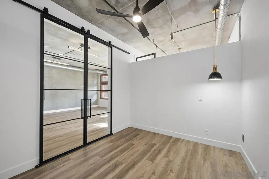 Step into this stunning, fully reimagined 1 bedroom + den Parkloft residence where urban sophistication meets modern comfort. This New York–style loft showcases soaring 10-foot ceilings, newly added walls, and over $25K in custom Rustica glass and metal doors that define the space with style and function. The versatile den offers options for a guest room, home office, or creative retreat, while the open-concept living area perfectly balances industrial charm with modern warmth. The chef-inspired kitchen boasts dramatic quartz waterfall counters, full backsplash, high-end Samsung and Subzero appliances, and designer lighting that enhances every gathering. The spa-like primary bath features large-format tile, vivid lighting, dual vanities, a jetted soaking tub, and a walk-in frameless glass shower. French doors off the great room open to a private balcony—complete with a natural gas hookup—ideal for entertaining or simply relaxing in the heart of East Village’s vibrant Ballpark District. One SUV-sized parking space and private storage room also included. Attention to detail continues throughout this residence, from the built-out primary closet with mirrored barn door to the thoughtfully redesigned guest bath with custom vertical tile and curated fixtures. Additional upgrades include newer front-load laundry, custom built-ins for storage, hard-surface flooring throughout, and designer lighting in every room. Smart-home features such as a Nest thermostat and LED accent lighting provide added convenience and energy efficiency. Parkloft offers an exceptional urban lifestyle with an attended Zen-inspired lobby, state-of-the-art fitness center, beautifully landscaped courtyard, and resident lounge with kitchenette—perfect for entertaining. Just steps from Petco Park, the Gaslamp Quarter, and the Marina District, this move-in-ready home blends privacy and sophistication with the best of Downtown San Diego living.