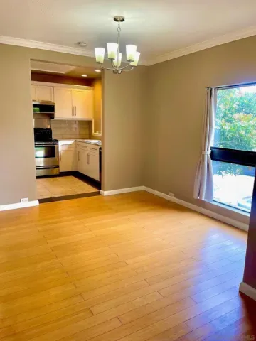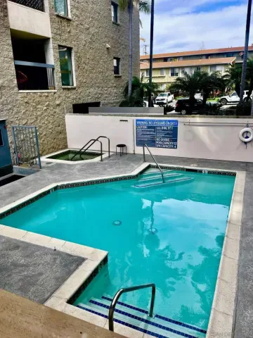 Rent in style on the border of Hillcrest and Bankers Hill in this end unit, 2BR / 2 Bath Condo (1222 sq ft). This unit boasts hardwood flooring at entrance and in living room / dining room with carpet in bedrooms. Master Suite has walk-in closet and in-suite bathroom with large oval tub. Living Room has hardwood floors with sliding glass doors to balcony. Additional balcony off Master Suite. Kitchen with stainless steel appliances and full-size washer/dryer in laundry closest. One assigned parking spot in garage and one assigned spot in rear parking area. Complex features pool, hot tub and BBQ area and extra storage closet. No Pets or Smoking. HOA charges $250 Move-In and Move-Out Fee to schedule and pad elevator. $250 Cleaning Fee on Move-out (if needed).