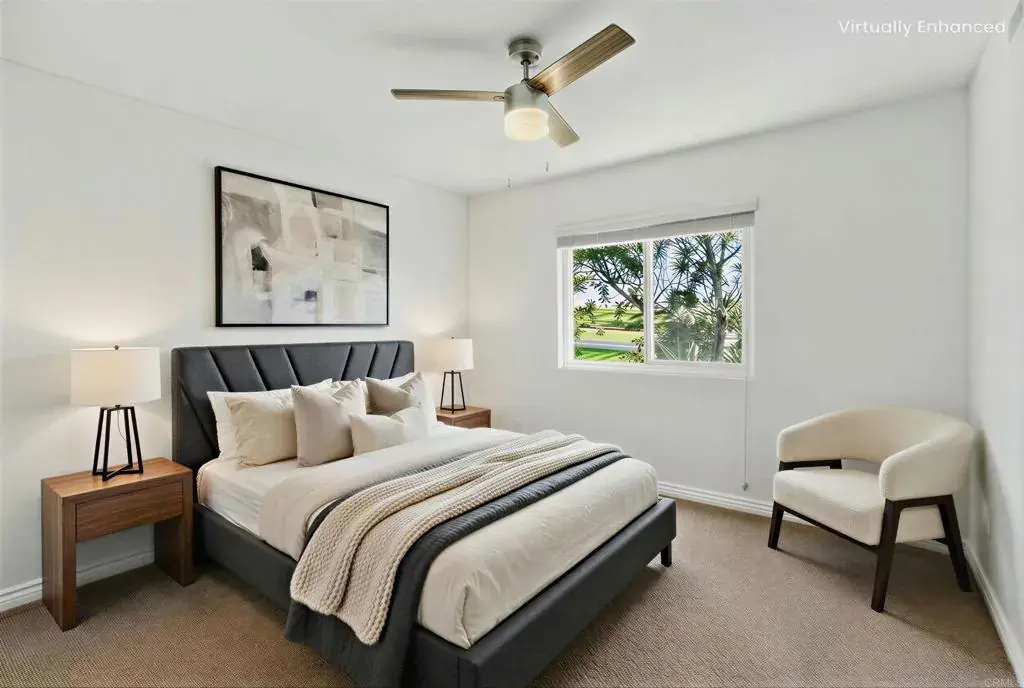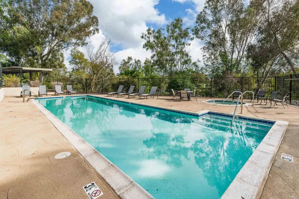 Welcome to this 2-bedroom, 2-full-bath condo in the gated Latitude community in San Diego’s Fairmount Park neighborhood. This desirable floor plan offers bedrooms positioned on opposite sides of the unit for added privacy—ideal for roommates, guests, or a home office setup—and no one living above you. The interior features fresh paint, recessed lighting, and new ceiling fans, creating a bright and comfortable living space. A newer HVAC system provides year-round comfort, and the convenience of an in-unit washer and dryer makes daily living easy. Latitude residents enjoy gated access along with community amenities including a pool, sauna, and fully equipped fitness center. The location offers excellent connectivity with quick access to Interstate 15 and Highway 94, making commuting throughout the city simple and efficient. You’re approximately 2 miles from Balboa Park and roughly 4 miles from Downtown San Diego, placing dining, entertainment, and waterfront attractions within close reach. While the community benefits from convenient freeway access and urban energy, nearby residential streets provide pleasant neighborhood walking options. This is a great opportunity to own a centrally located condo with a functional layout and access to everything San Diego has to offer.