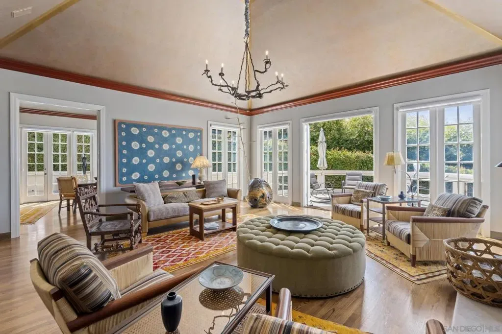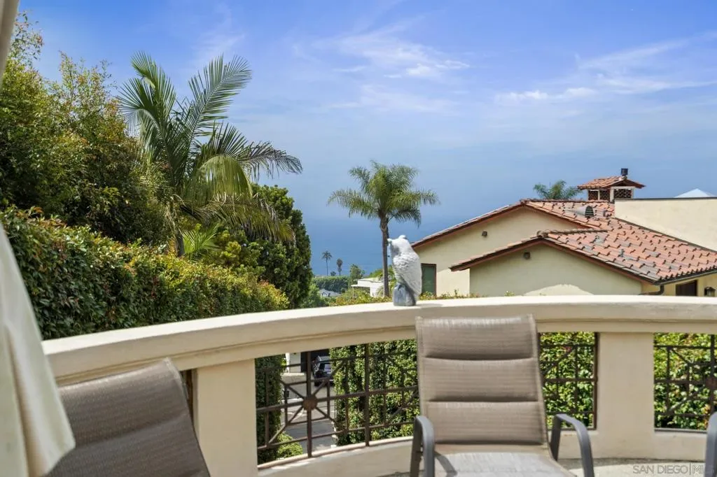 Perched on top of an elevated lot this Ocean view residence offers the ease of single level living with the primary on the main entry floor, but features two full bedroom ensuites downstairs with a full size laundry room and dedicated gym for everyday convenience. All bedrooms have multiple closets and balconies with ocean views, plus a lower level walk out creating ideal comfort and privacy. A skylit spectacular entry welcomes you in to a grand living space crowned by a soaring tray ceiling and brick fireplace. Elegant French doors with traditional individual mullions open to a charming viewing patio, plus larger seating space with a built-in BBQ is perfect for entertaining and enjoying cool ocean breezes. Full size den is filled with natural light, featuring large windows and additional French doors. Just off the kitchen is a large pantry area with desk seating, front view window, and a door for privacy. The home is is topped with a classic tile roof, timeless brick facade, long private drive that is being gated. A 12 month lease or longer is being considered.