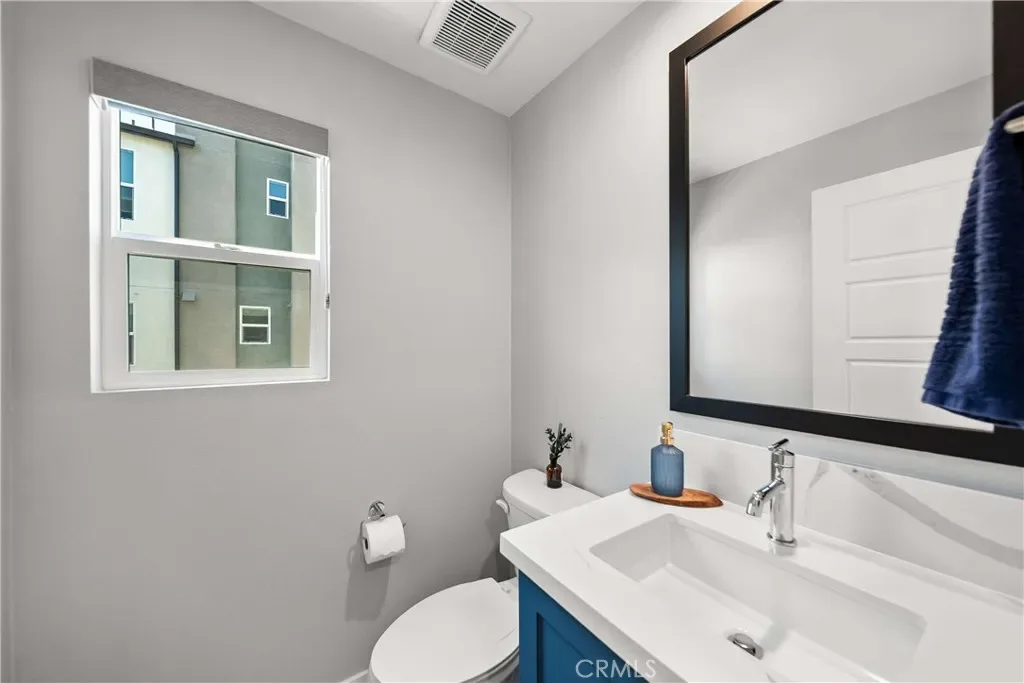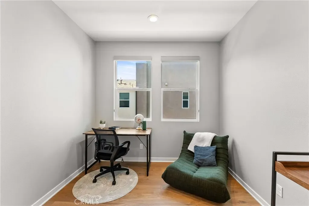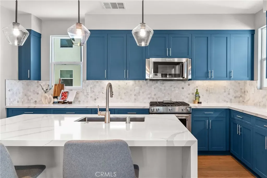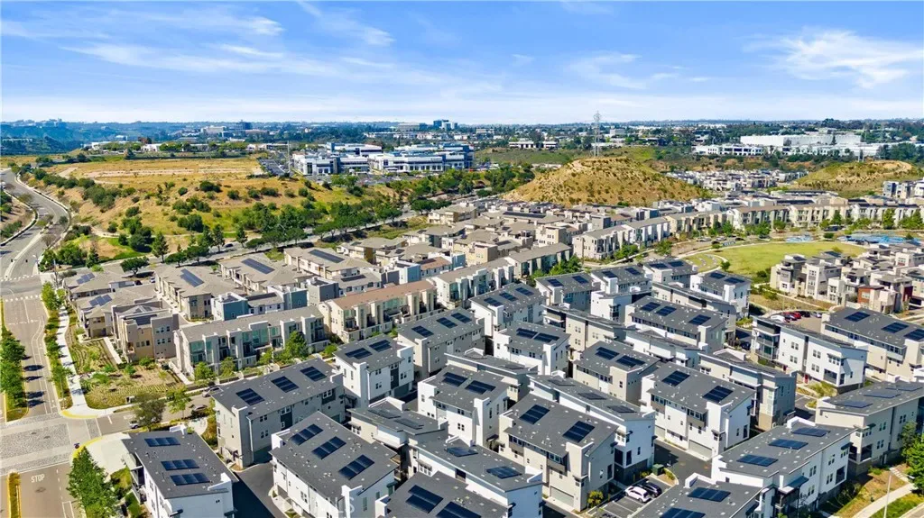Welcome to a thoughtfully upgraded, light-filled end-unit in the highly sought-after 3Roots community, featuring over $100,000 in premium enhancements, including fully owned and paid-off solar. The home blends modern design with everyday functionality, showcasing wide-plank engineered wood flooring, designer paint, recessed lighting, and integrated Sonos speakers throughout the living room. The kitchen is a true focal point, anchored by a waterfall-edge quartz island, custom pull-out pantry drawers, a touchless faucet, and elevated finishes. A private entry-level bedroom with a full bath and direct access to the attached two-car garage offers flexibility for guests or a home office. The primary loft features an additional bonus area ideal for an office, nursery, or workout space, along with custom California Closets and backlit mirrors that add a polished, high-end feel. Built by Shea Homes as the Atwood floorplan, this residence is part of the vibrant 3Roots community, where residents enjoy access to a state-of-the-art fitness center, pools, parks, and a dynamic community hub, all just minutes from top dining, shopping, and coastal access.
