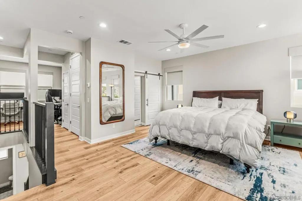 Built in 2024, this tri-level townhome offers modern design and exceptional comfort. Features include an attached 2-car garage, open floorplan, and a beautifully appointed kitchen with a large island—perfect for entertaining. The spacious primary suite provides a relaxing retreat, enhanced with custom California Closets for optimal organization. Additional upgrades include owned solar and a whole-house water filtration system, adding efficiency and everyday convenience. The living room balcony creates a seamless indoor-outdoor feel. Located in the desirable 3Roots community, residents enjoy resort-style amenities including a pool, parks, and more. Prime location with easy access to Sorrento Valley’s tech hub, UCSD, and nearby coastal areas. Move-in ready and impeccably maintained—this home truly stands out in the neighborhood!