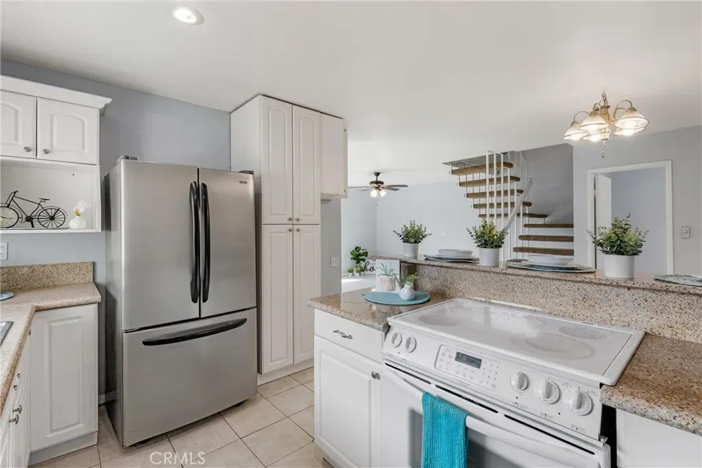 Enjoy the beauty of Southern California weather in this bright and airy 2 story condominium. 3 large bedrooms, 1.5 baths just steps from the sparkling pool. Low maintenance tile flooring covers the whole lower level. Walk into the living room with ample space for oversize sofas and additional seating. Great layout for entertaining with a designated dining area and additional counter seating. Fully functional kitchen with plenty of storage! Three large bedrooms upstairs and a remodeled bath with dual sinks and private shower/bath area. Private courtyard right off the living room to enjoy year-round.