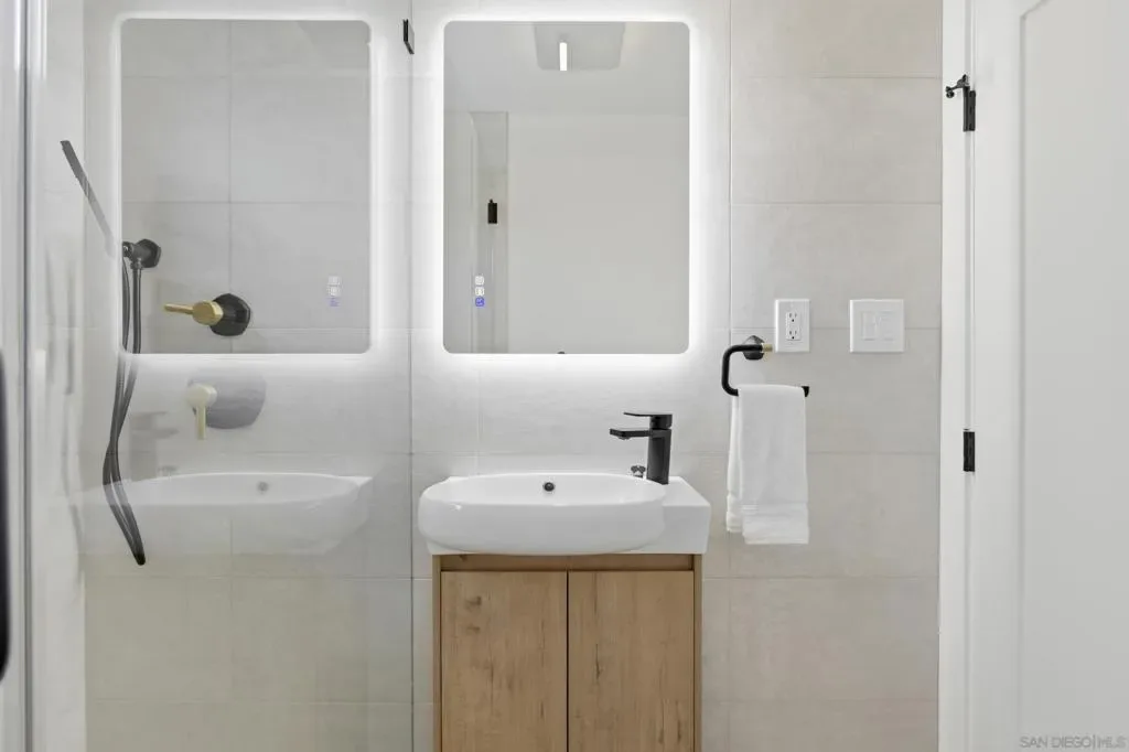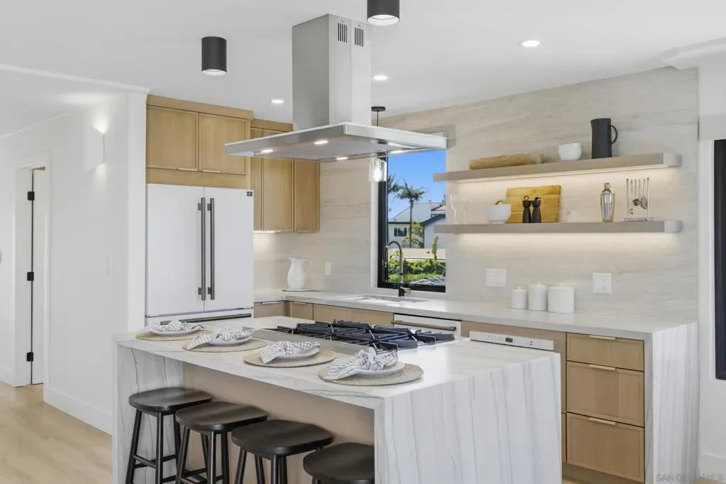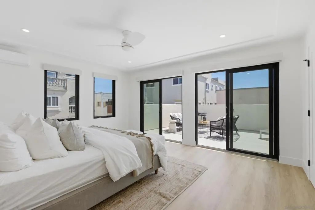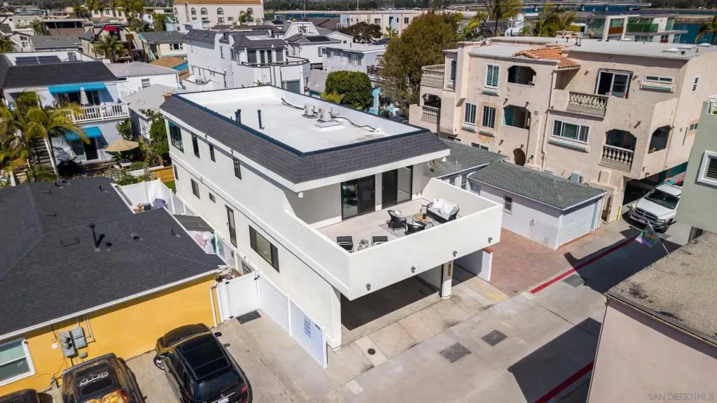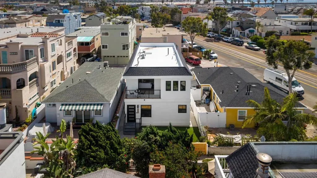 Welcome to an exceptional duplex in the heart of South Mission Beach, just steps from the bay in one direction and the ocean in the other. This expertly remodeled property offers the perfect blend of luxury, flexibility, and income potential in one of SoCal’s most desirable beach communities. The property features two beautifully reimagined units with a modern coastal design and elevated finishes throughout. The downstairs unit offers three bedrooms and one bathroom with a private outdoor space finished in artificial turf, ideal for relaxing after the beach. Upstairs, the two-bedroom, two-bathroom unit showcases a bright open-concept layout and an expansive outdoor living area, along with peek ocean views. Both units feature chef inspired kitchens with white oak cabinetry, premium countertops, and white stainless steel appliances, along with spa like bathrooms and custom LED white oak floating shelves. Each bedroom and living space includes Samsung TVs and motorized blinds, enhancing the turnkey, furnished appeal. A security system with cameras is also installed for added peace of mind. Extensive upgrades include a new roof, stucco, windows, mini-split HVAC systems, and updated electrical, plumbing, sewer, and foundation improvements. An oversized two car garage plus an additional off street space provides rare and valuable parking. Ideal for a vacation home, live in one / rent the other, or high performing investment, this property also qualifies for a coveted Tier 2 short term rental license making it a true turnkey coastal asset with both lifestyle and income potential.