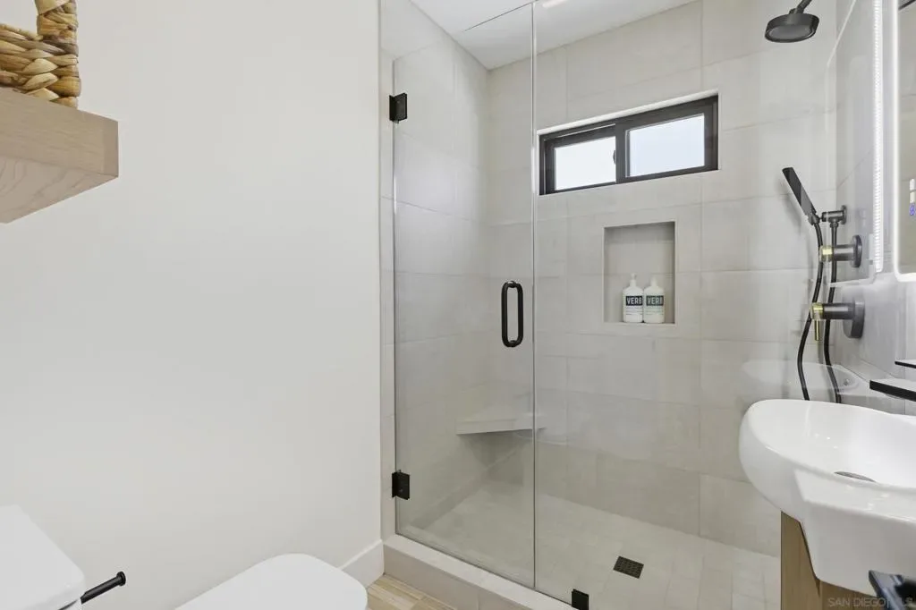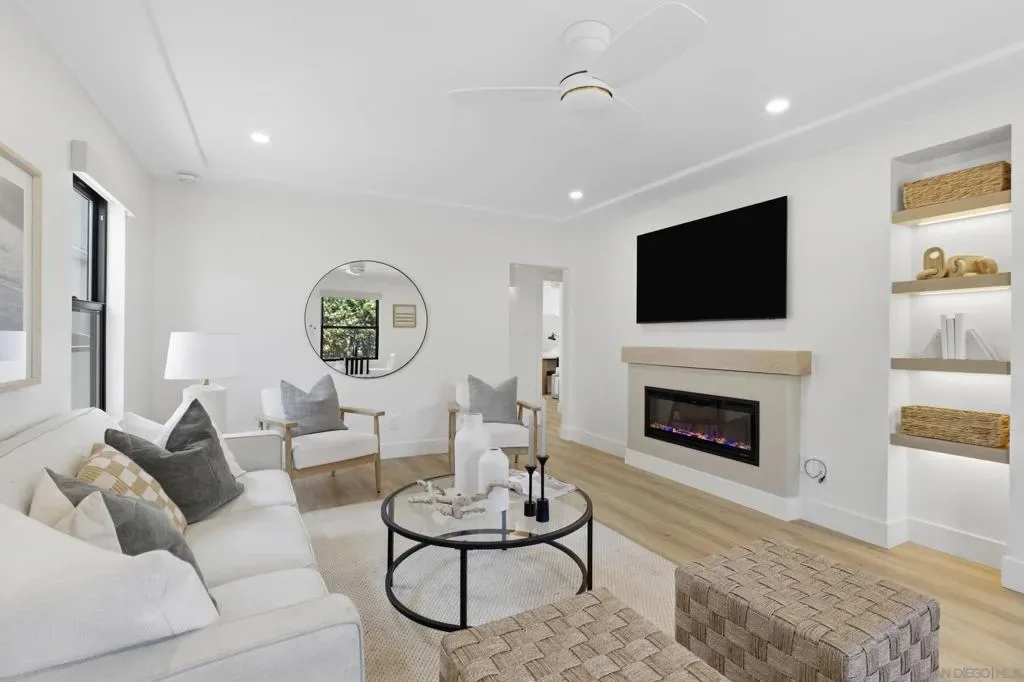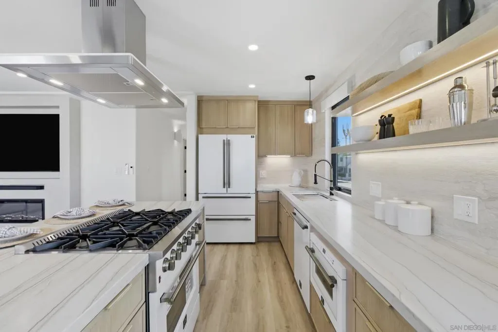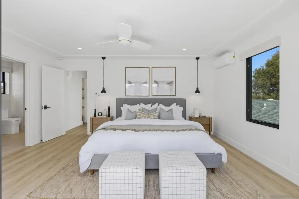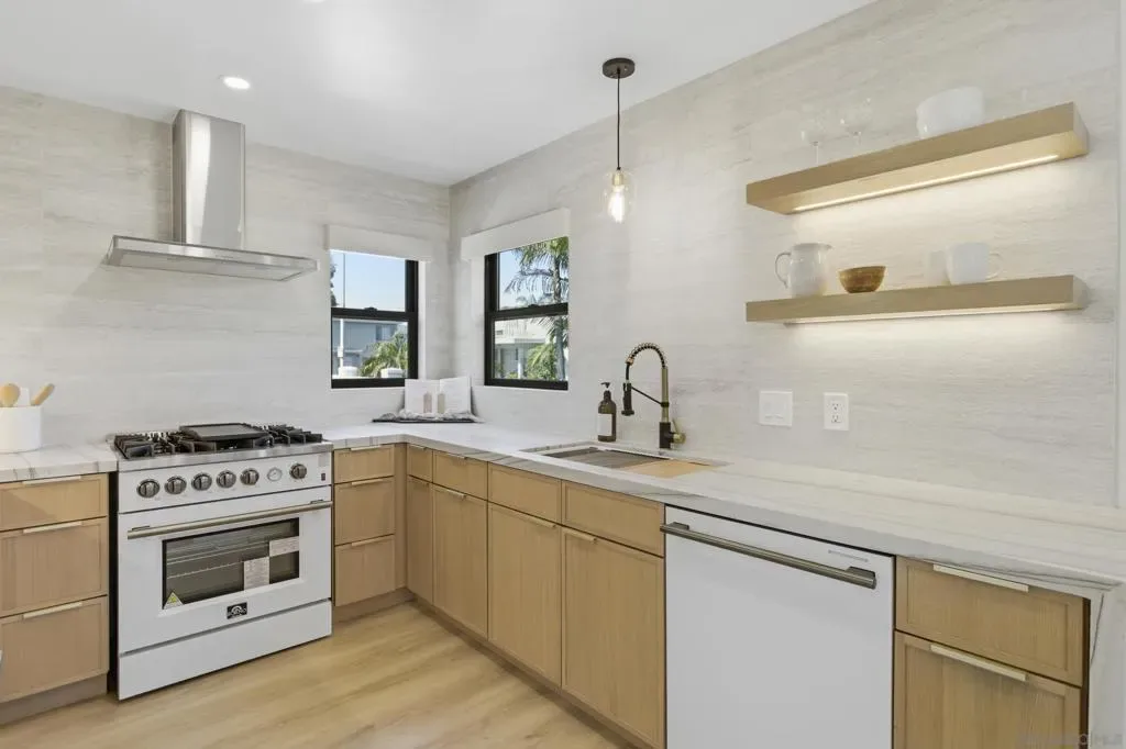 Welcome to an exceptional duplex in the heart of South Mission Beach, just steps from the bay in one direction and the ocean in the other. This expertly remodeled property offers the perfect blend of luxury, flexibility, and income potential in one of SoCal’s most desirable beach communities. The property features two beautifully reimagined units with a modern coastal design and elevated finishes throughout. The downstairs unit offers three bedrooms and one bathroom with a private outdoor space finished in artificial turf, ideal for relaxing after the beach. Upstairs, the two-bedroom, two-bathroom unit showcases a bright open-concept layout and an expansive outdoor living area, along with peek ocean views. Both units feature chef inspired kitchens with white oak cabinetry, premium countertops, and white stainless steel appliances, along with spa like bathrooms and custom LED white oak floating shelves. Each bedroom and living space includes Samsung TVs and motorized blinds, enhancing the turnkey, furnished appeal. A security system with cameras is also installed for added peace of mind. Extensive upgrades include a new roof, stucco, windows, mini-split HVAC systems, and updated electrical, plumbing, sewer, and foundation improvements. An oversized two car garage plus an additional off street space provides rare and valuable parking. Ideal for a vacation home, live in one / rent the other, or high performing investment, this property also qualifies for a coveted Tier 2 short term rental license making it a true turnkey coastal asset with both lifestyle and income potential.
