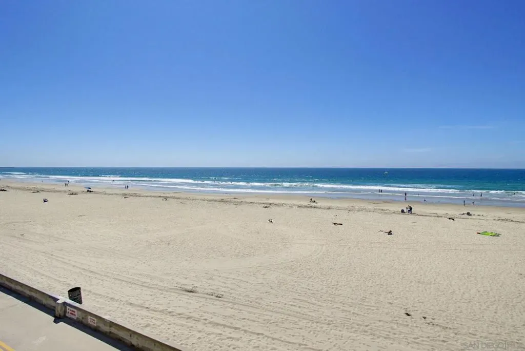 Top floor Mission Beach condo with endless Pacific Ocean views! This 2 bedroom “Top of the Beach” complex property showcases the Mission Beach lifestyle- views, the iconic boardwalk, walkability & the sand/ocean at your doorstep. It’s an open floorplan with those ocean views right from the front door. Large bedroom upon entry with lots of storage options & built ins. Bedroom 2 capitalizes the top floor location with large windows, forever views right from the bed & the proximity to fall asleep to crashing waves at night! Great balcony space for sharing sunsets with friends or watching the world go by below. Ideal location in Mission Beach with all the dining, entertainment & shopping in this desirable commercial corridor. The complex features an elevator, a secure/gated parking spot, community laundry & they are just now completing a beatification project with fresh paint. Beach retreat, vacation rental, second home or your main house…you can’t go wrong on this one!