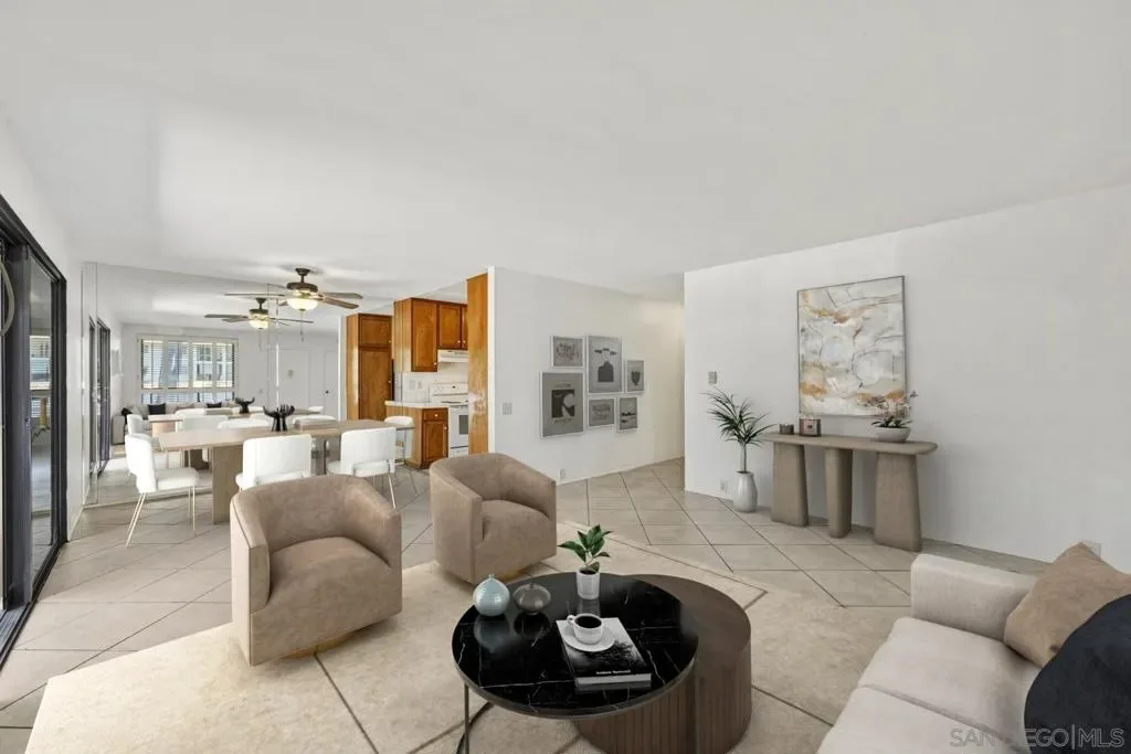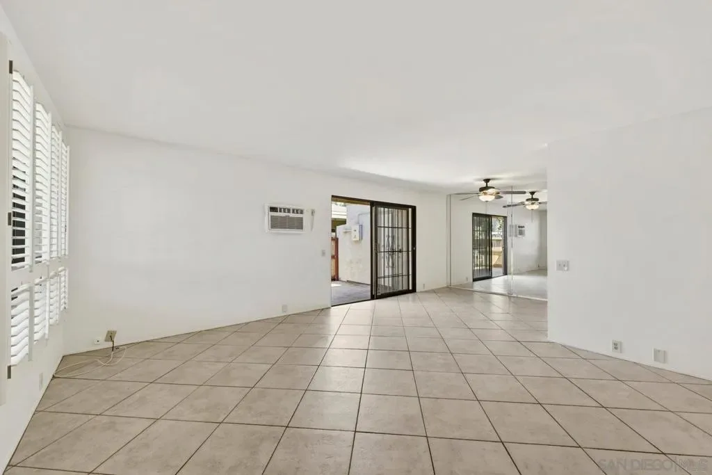 This beautifully situated single-story end-unit offers the privacy and comfort of having no neighbors above or below, surrounded by lush trees and serene greenery. The thoughtfully designed two-bedroom layout features a spacious living area that opens to a large private patio—perfect for relaxing or entertaining—complete with a convenient storage room. Inside, the home offers an in-unit laundry room, a walk-in closet in the primary bedroom, and modern upgrades including a solar system for added efficiency and comfort. Two assigned parking spaces provide everyday convenience. Residents enjoy access to resort-style community amenities, including pools, spa, and tennis courts, all within a welcoming, dog-friendly neighborhood. Ideally located in San Diego, this home combines peaceful surroundings with easy access to everything the area has to offer.