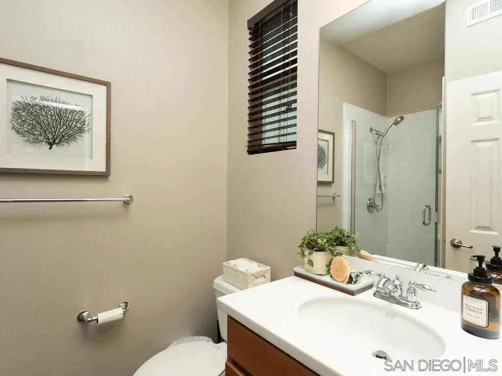 Welcome to 2684 Escala Circle, a beautifully updated Plan 3 Terrace residence in the sought-after community of Escala. Thoughtfully designed with three levels of living space, this home offers flexibility, comfort, and elevated style in one of Mission Valley’s most desirable gated neighborhoods. The entry-level features a private bedroom and full bathroom, ideal for guests, multigenerational living, or a home office, and is complete with new carpet. This level also provides direct access to the attached two-car garage for everyday ease and convenience.The main living level is bright and inviting, with an open-concept layout perfect for entertaining. The kitchen has been refreshed with new quartz countertops, providing a clean, contemporary feel and ample prep space. The dining area flows seamlessly into the spacious living room, anchored by a cozy gas fireplace. Step outside to the patio to enjoy the afternoon sun and relaxed indoor-outdoor living. This level also includes a convenient half bath and a dedicated laundry room, making daily living both practical and efficient. On the third level, you’ll find two spacious bedrooms, each with its own ensuite bathroom, creating a functional dual-primary layout perfect for privacy and comfort. New carpet on the stairs adds a fresh finishing touch to the home’s recent updates. Residents of Escala enjoy beautifully maintained grounds and resort-style amenities, including a clubhouse, pools, fitness center, tennis courts, and playground, all within a gated setting just minutes from everything San Diego has to offer.