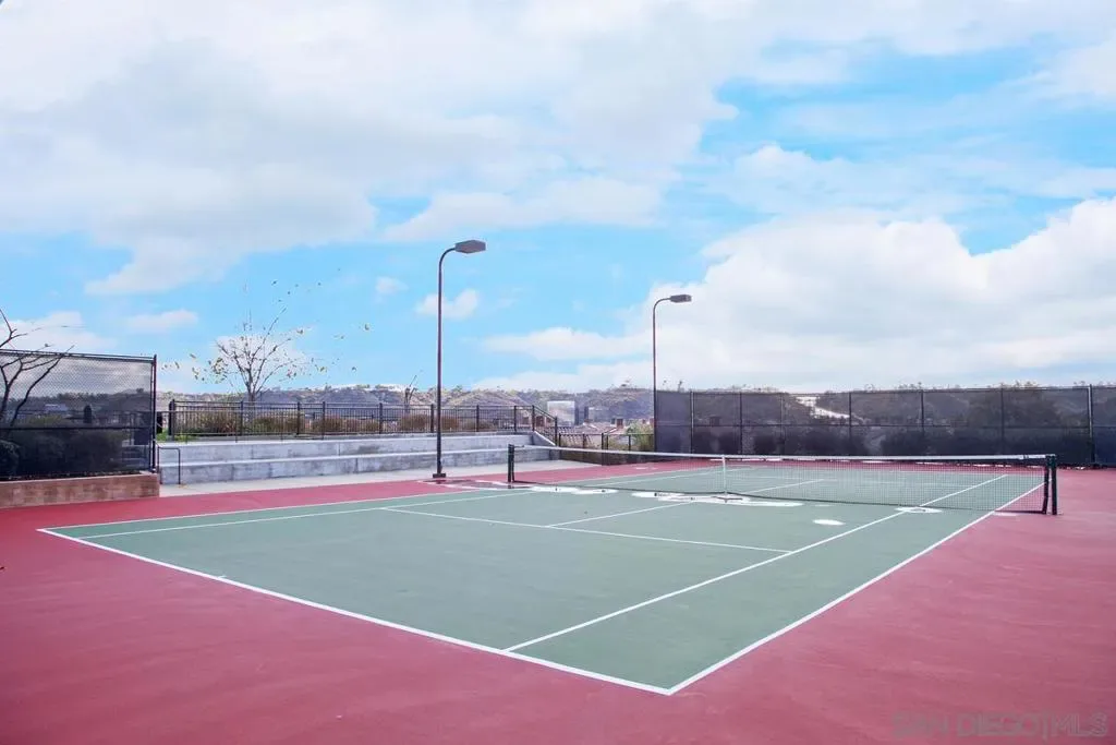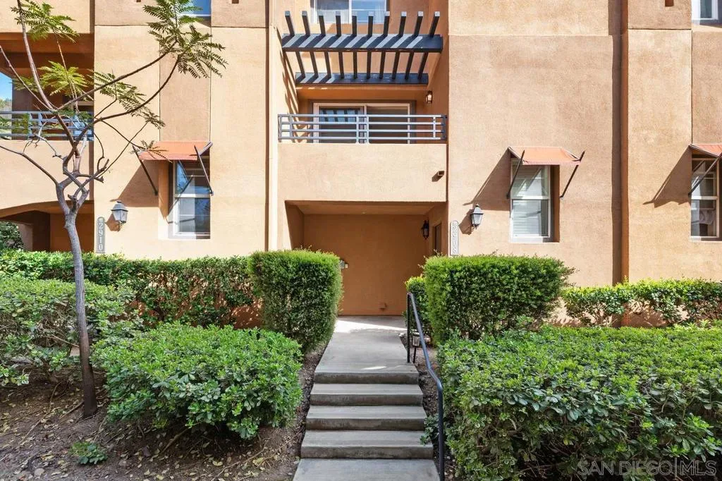 Tucked within the serene, gated community of Bridges at Escala in the heart of Mission Valley, this bright and spacious townhome offers the perfect blend of comfort, function, and lifestyle. Large windows fill the home with natural light, creating a warm and inviting feel from the moment you step inside. The main living area is both open and welcoming, centered around a tiled fireplace and a sliding door that leads to a private balcony, the perfect spot to enjoy a quiet morning or unwind at the end of the day. Just beyond, the kitchen is thoughtfully connected to the living space and features a built in microwave, tile countertops, and a double sink set beneath a large window, bringing in even more natural light. Also on the main living level is a guest bedroom and full bathroom, offering flexibility for visitors, a home office, or multigenerational living. Upstairs, the spacious primary suite serves as a peaceful retreat with its own ensuite bath featuring a double vanity, tiled countertops, and a shower/tub combination. A second upstairs bedroom also enjoys the privacy of its own ensuite bathroom, making the layout ideal for both everyday living and hosting guests. The home is complete with an attached oversized two-car garage, full-sized laundry, and a utility sink, along with valuable upgrades including recently installed HVAC and heat pump in 2023, a leased solar system, reverse osmosis system, and home network wiring installed in 2022. Beyond the home, The Bridges at Escala offers a beautifully maintained, resort-like setting with lush greenery and exceptional amenities including a pool, spa, tennis courts, kid’s playground, dog park, BBQ area, clubhouse, and gym. All of this in a prime Mission Valley location, within walking distance to Snapdragon Stadium and Park, with easy access to the San Diego Trolley, Costco, IKEA, restaurants, shopping, and more.