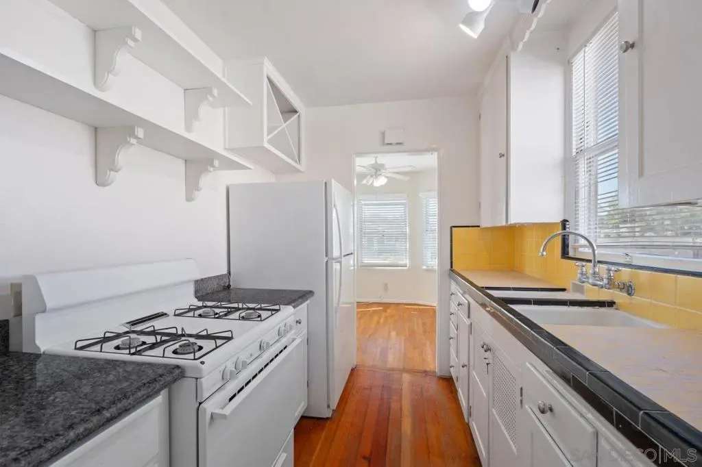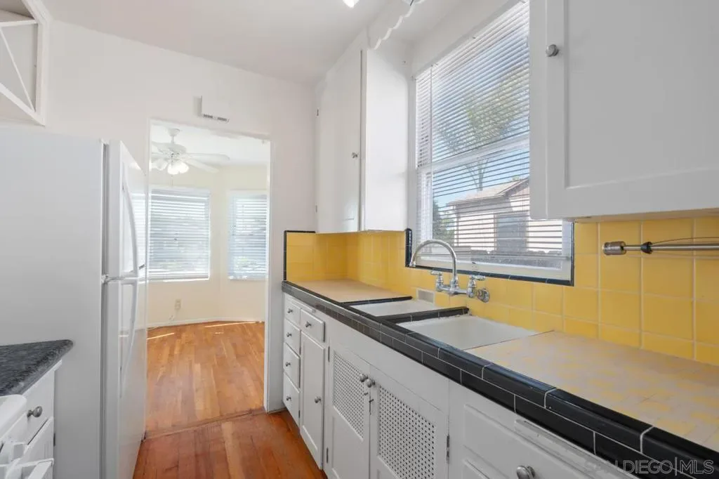 Her beauty might be a bit faded but her highly desirable Normal Heights location north of Adams and her future potential are bright. She could use some updating, TLC, and cash but opportunities abound with this well-loved 3-unit property. A charming cottage with 2 bedrooms/1 bath; a back home with 1 bedroom/1 bath; and a converted garage converted into a studio with kitchen and bath that is not currently permitted as habitable space. Off street and off-alley parking for all units. 6679 square foot lot. The charming 2 bedroom/1 bath front house (4881) has carefully-tended landscaping in the front yard. Original wood windows and hard wood floors match her original kitchen. Plus, lovely natural light in the living room. The backyard is astro-turfed with a small brick patio and a treacherous beauty of a ficus tree. That ficus has created some issues with the foundations of both the front and back houses although both have been enthusiastically continuously rented for years in their current condition. Which is how this property is going to be sold; in its current condition. There is incredible potential for improvement here. Three SDG&E meters and 1 water meter. There is an old wooden garage on the front portion of the property that has been used for storage for the front house. And a long driveway with parking for 2 plus cars. On the back portion of the lot is the one bedroom/1 bath house (4883) with alley access, a cozy brick side patio and a small entry/patio in front. I can’t lie; the back 1 BR house is a bit tired and needs some love. And a new roof. And heat. And a new bathtub and new flooring, along with some other improvements to enhance her tiny charm. And then there is the third “unit”, the studio, the wild card. 4879—which may or may not be a legitimate city-building department assigned street address although it does get mail delivery for that address to its mailbox attached to the front house. It is a newer garage structure (maybe 2018?), and the rumor is that it was permitted as a “craft room”. Whether the small bathroom and kitchen were included in the original craft room design is unknown. Its garage door is still intact though latched in place. There is parking behind the studio/garage/unit for at least one car on the garage apron. 4881-4883 33rd is a unique property with lots of potential for an investor/buyer with cash and foresight.