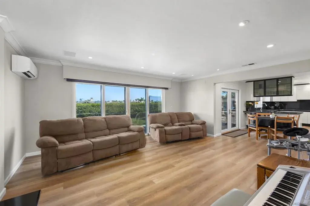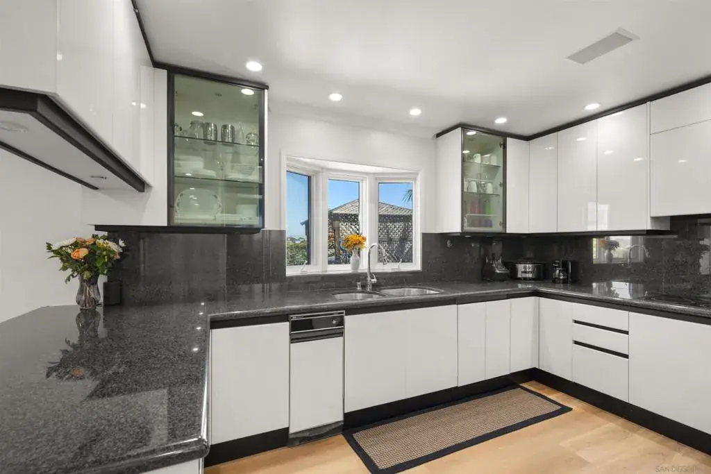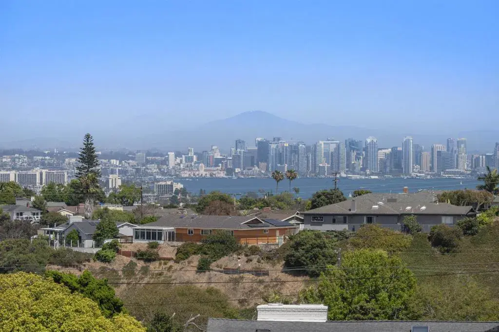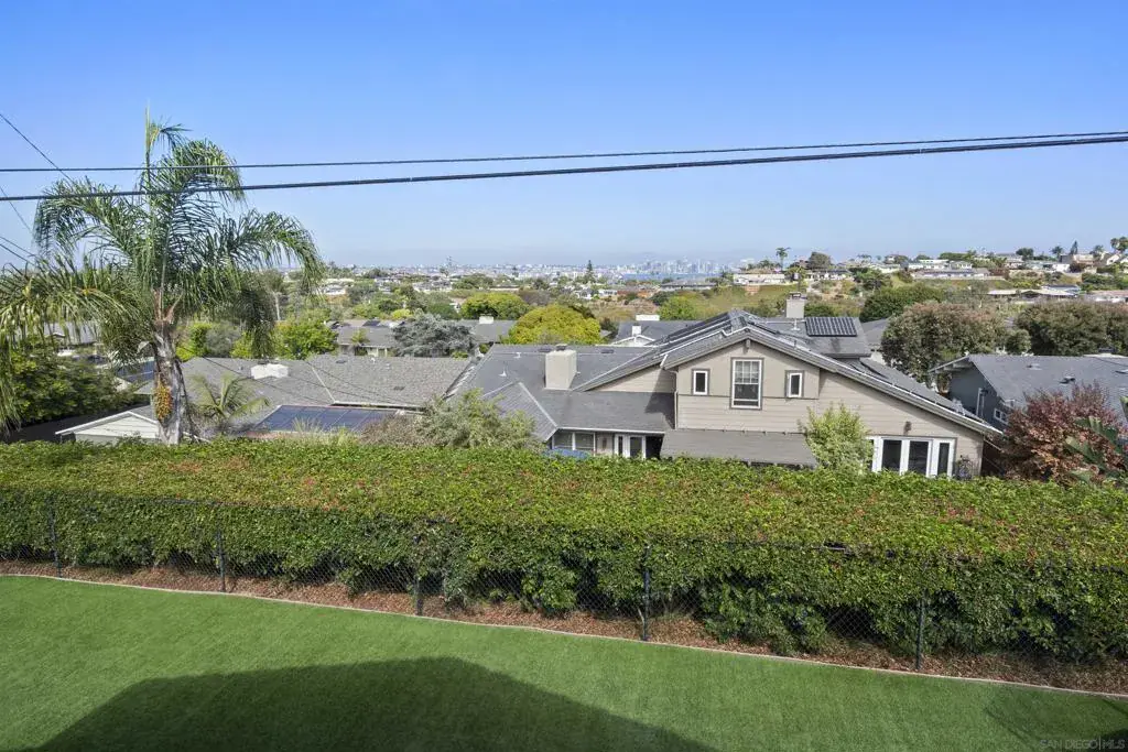 Introducing 1151 Catalina Blvd, a beautifully updated Mid-Century Modern home located in the heart of Point Loma. This exceptional residence offers sweeping views of the San Diego Bay, the downtown skyline, and the majestic mountains beyond. Situated on a spacious 1/4-acre lot, the 5-bedroom, 4-bathroom home provides a serene and quiet living environment. It is thoughtfully buffered from the hustle of Catalina Blvd by a generous 100-foot setback, ensuring maximum peace and privacy for its residents. The home’s striking entrance features a beautiful private atrium, creating a tranquil outdoor feel that flows naturally into the primary dining room, which is bathed in natural light. Vaulted ceilings and newly installed plank flooring enhance the Mid-Century Modern aesthetic, with clean lines, open spaces, and a seamless connection between the indoors and outdoors. The upper-level primary suite is a true retreat, offering stunning views, a private balcony, and a spa-like ensuite with dual vanities and a walk-in closet, along with additional storage in three extra closets. Designed for both function and elegance, the kitchen is equipped with granite countertops, dual ovens, European-style cabinetry, and top-tier appliances. The family and formal living rooms showcase custom marble fireplaces, adding warmth and sophistication with the signature style of the era. Enjoy seamless indoor-outdoor living with two main areas that lead to an expansive backyard, perfect for entertaining or relaxing with panoramic views of the Bay, Harbor, and surrounding mountains.