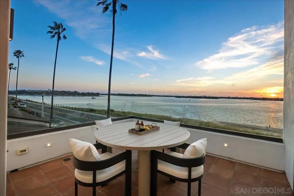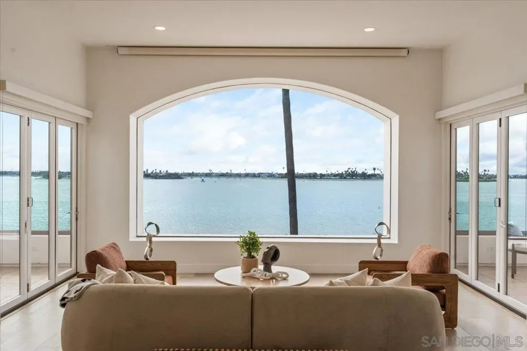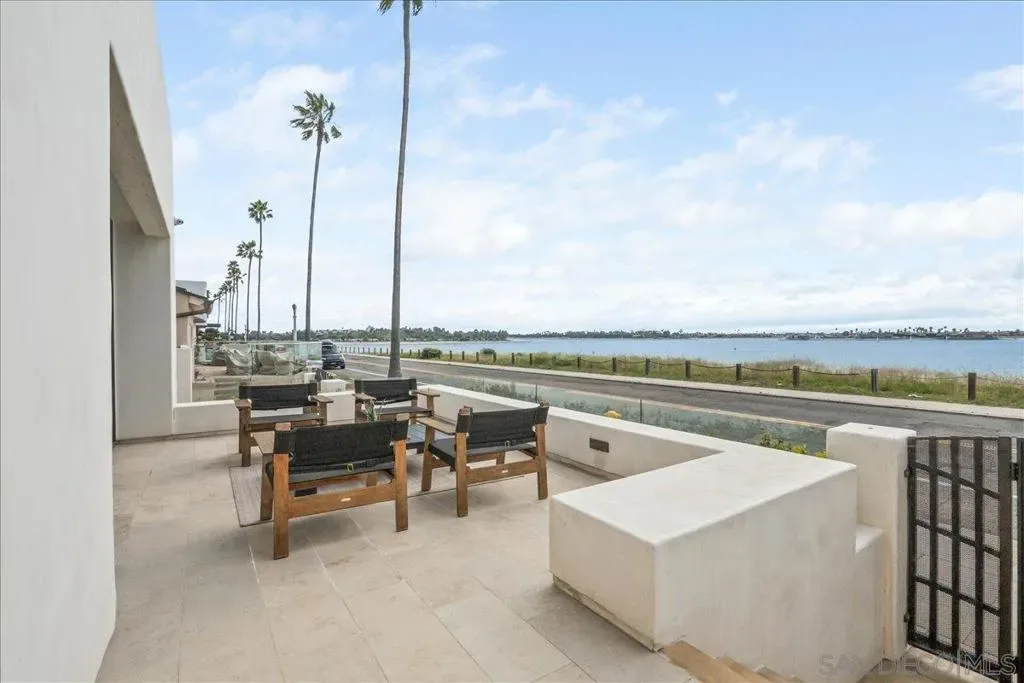 Welcome to your DREAM HOME on Riviera Drive, perfectly positioned on the front row of Sail Bay with unobstructed panoramic views stretching to the Pacific Ocean. Located in Pacific Beach’s highly sought-after Crown Point neighborhood and designed by renowned architect Paul Thoryk, this stunning waterfront residence offers true coastal luxury in a home that feels brand new! Thoughtfully designed to showcase its spectacular setting, the home features expansive walls of glass, open-concept living spaces, and seamless indoor-outdoor flow that flood the interiors with natural light while framing every room with shimmering bay views. Offering approximately 3,209 square feet, the home includes four bedrooms and three-and-a-half bathrooms, with an optional main-level primary suite. The chef’s kitchen is equipped with a Wolf stove, Monogram cooktop, a full-size Sub-Zero refrigerator, and an additional Sub-Zero refrigerator in the kitchen expansive island. Upstairs, a spacious media/family room with additional wet bar and floor-to-ceiling windows opens to two waterfront terraces, while secondary bedrooms each enjoy private outdoor access. The panoramic rooftop deck captures breathtaking sunrise-to-sunset views of the bay and ocean! Additional highlights include six patios, parking for up to five cars, and a gated driveway with parking for three additional vehicles. With direct access to the boardwalk and walkability to Pacific Beach’s premier dining, cafés, and coastal attractions, this is a rare opportunity to own a true architectural waterfront sanctuary! List of upgrades, live site, and video in the Documents section