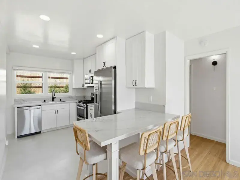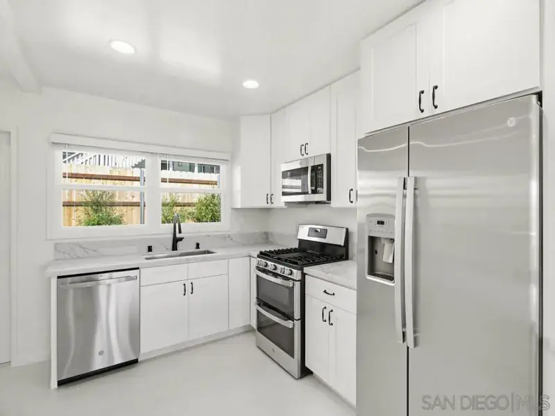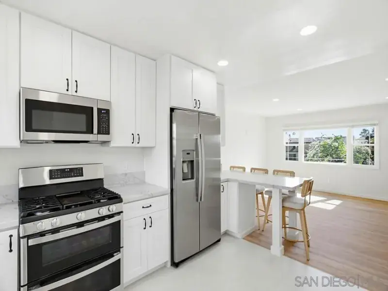 GORGEOUS brand new remodel of this adorable beach cottage on a quiet street in North PB. Brand new kitchen including: flooring, cabinets, quartz countertops, stainless appliances and overflow mudroom with pantry storage and stackable washer/dryer. Charming narrow plank hardwood has been refinished beautifully, brand new dual paned windows throughout, all new electrical fixtures/outlets/switch plates, full paint and gorgeous new landscaping in the front and back yards which are both private. One car garage included and water & landscaper is paid by owner. Enjoy the convenience of being blocks to Kate Sessions Park/Elementary, shopping, Vons/Trader Joe’s and a short distance to the beach and bay!