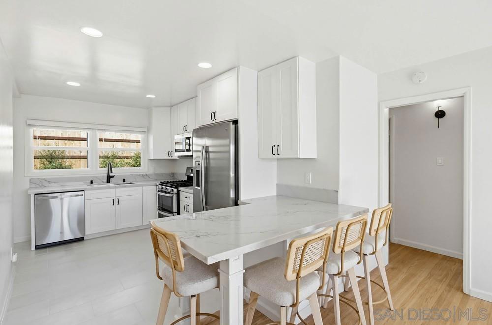 GORGEOUS brand new remodel of this adorable beach cottage on a quiet street in North PB. Brand new kitchen including: flooring, cabinets, quartz countertops, stainless appliances and overflow mudroom with pantry storage and stackable washer/dryer. Charming narrow plank hardwood has been refinished beautifully, brand new dual paned windows throughout, all new electrical fixtures/outlets/switch plates, full paint and gorgeous new landscaping in the front and back yards which are both private. One car garage included and water is paid by owner. Enjoy the convenience of being blocks to Kate Sessions Park/Elementary, shopping, Vons/Trader Joe’s and a short distance to the beach and bay!