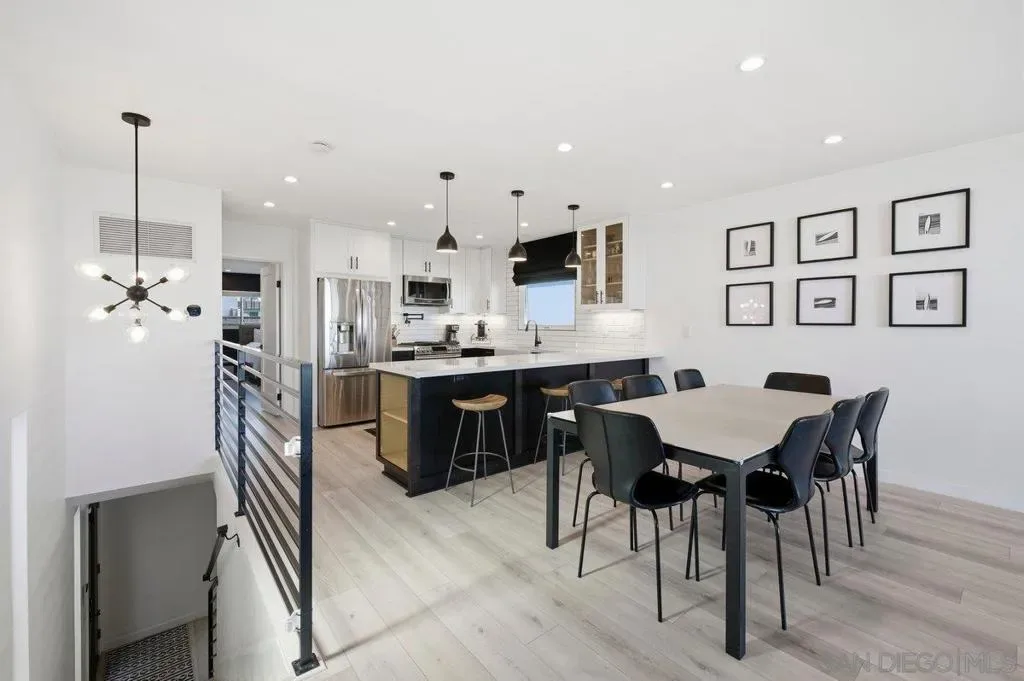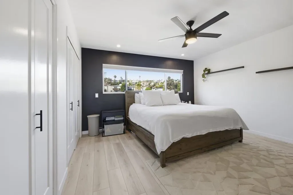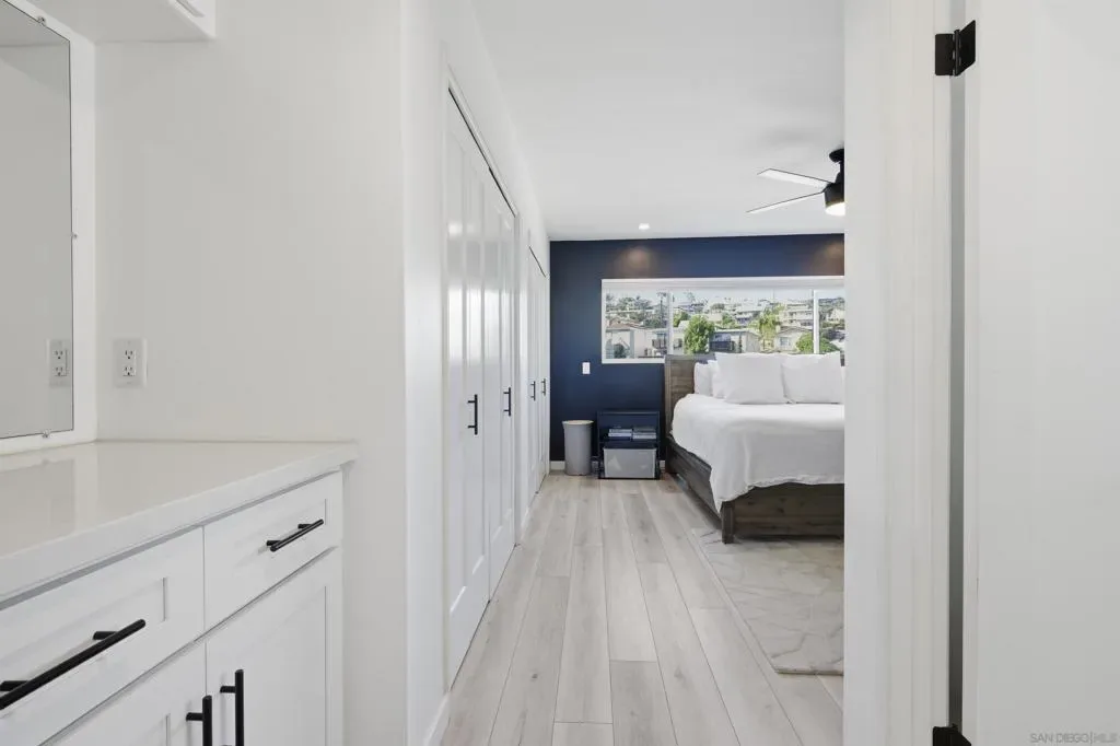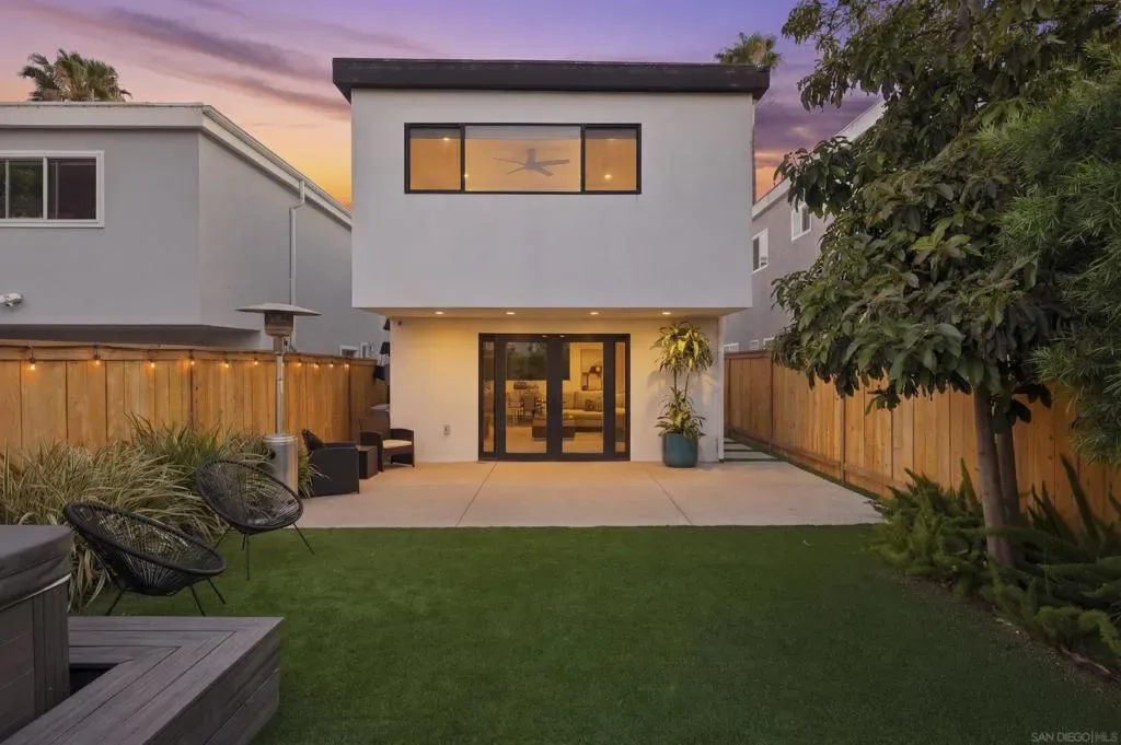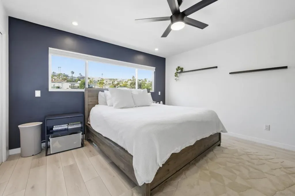 Elevated high above the Pacific Beach flats, Bay View Modern is a rare find that perfectly balances privacy, high-tech luxury, and breathtaking southern views of Mission Bay. Situated at the end of a quiet cul-de-sac with no through traffic, this home is nestled in a friendly community that’s just minutes from local shopping and top-tier schools. The residence underwent a full interior remodel in 2019 followed by an exterior stucco and paint refresh in 2020, resulting in a turnkey sanctuary equipped with house-wide voice-activated lighting, updated windows with custom treatments, and an in-wall surround sound system. The versatile floor plan features two bedrooms and a bathroom on the lower level, while the upper level serves as the heart of the home with a third bedroom, bathroom, and an open-concept kitchen and living area designed to take full advantage of the glistening water views. The chef-inspired kitchen offers modern conveniences like a pot filler and integrated lazy Susans. From the front balcony, you are treated to a front-row seat for vibrant San Diego sunsets and the magic of July 4th fireworks glistening over the bay. Outdoor living is redefined in the 2023 remodeled backyard, which features a large patio and deck, a seven-seater jacuzzi with built-in Bluetooth audio, and a mature avocado tree producing impressive fruit. This smart-home retreat offers ultimate peace of mind with fully paid solar, a new water heater installed in March 2026, a smart doorbell system, and a My Q smart garage door opener. By combining a “top-of-the-world” feel with effortless access to the best of San Diego, Bay View Modern represents the pinnacle of sophisticated coastal living.