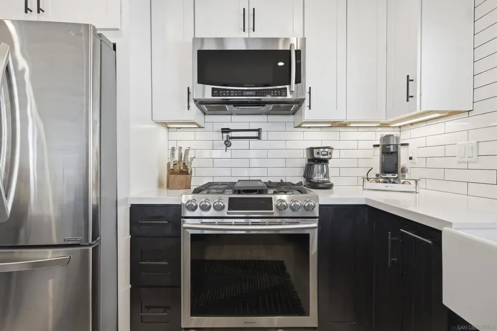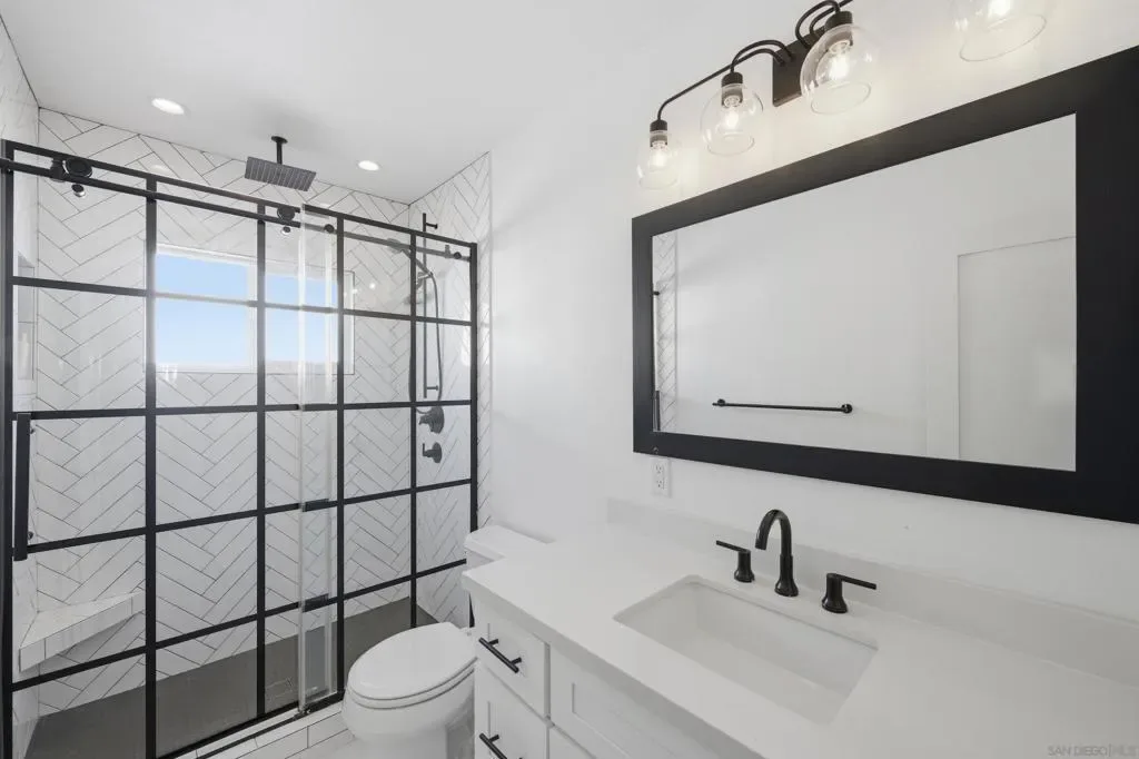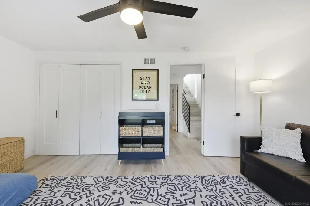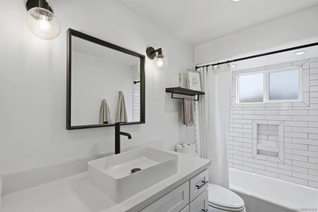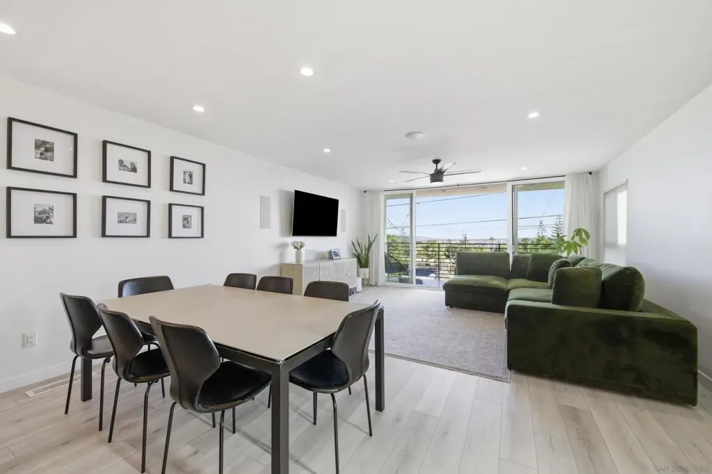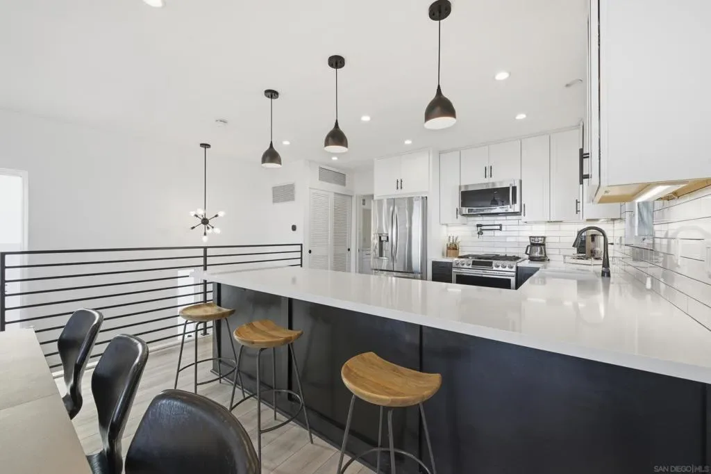 Elevated high above the Pacific Beach flats, Bay View Modern is a rare find that perfectly balances privacy, high-tech luxury, and breathtaking southern views of Mission Bay. Situated at the end of a quiet cul-de-sac with no through traffic, this home is nestled in a friendly community that’s just minutes from local shopping and top-tier schools. The residence underwent a full interior remodel in 2019 followed by an exterior stucco and paint refresh in 2020, resulting in a turnkey sanctuary equipped with house-wide voice-activated lighting, updated windows with custom treatments, and an in-wall surround sound system. The versatile floor plan features two bedrooms and a bathroom on the lower level, while the upper level serves as the heart of the home with a third bedroom, bathroom, and an open-concept kitchen and living area designed to take full advantage of the glistening water views. The chef-inspired kitchen offers modern conveniences like a pot filler and integrated lazy Susans. From the front balcony, you are treated to a front-row seat for vibrant San Diego sunsets and the magic of July 4th fireworks glistening over the bay. Outdoor living is redefined in the 2023 remodeled backyard, which features a large patio and deck, a seven-seater jacuzzi with built-in Bluetooth audio, and a mature avocado tree producing impressive fruit. This smart-home retreat offers ultimate peace of mind with fully paid solar, a new water heater installed in March 2026, a smart doorbell system, and a My Q smart garage door opener. By combining a “top-of-the-world” feel with effortless access to the best of San Diego, Bay View Modern represents the pinnacle of sophisticated coastal living.