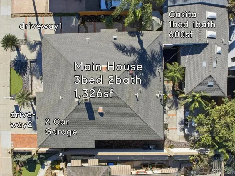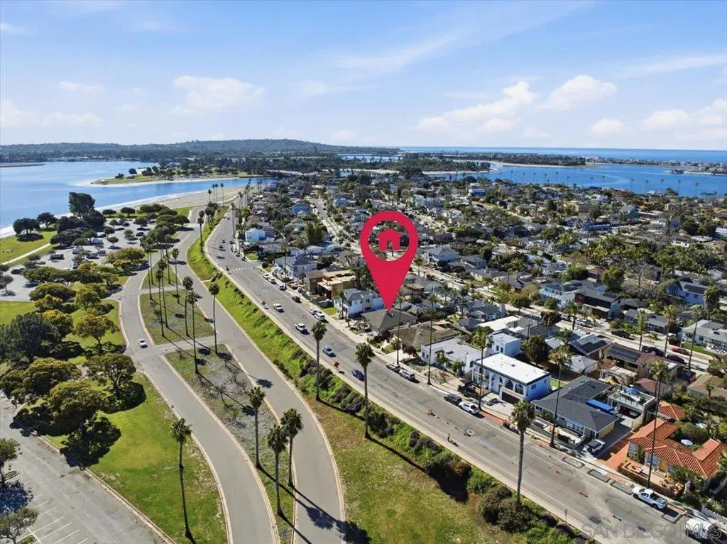 Crown Point Drive Water Views! First time on the market since the home was built, this property features a 3bed 2bath 1,326sf front house, and a 600sf rear 1bed 1bath casita w/ its own driveway, full kitchen, AC/Heat, and washer dryer. Front home features include: its own driveway w/ attached 2 car garage, washer dryer in garage, central AC/Heat, lovely open high-ceiling living space w/ gas fireplace, and front & rear patios. Crown Point Park is just across the street with rolling green hills and lush trees. Most owners on Crown Point Drive elect to build a 2nd/3rd story to capture the BIG east and southerly views over Mission Bay toward Fiesta Island, Bay Park, and Downtown. Crown Point is one of the best coastal neighborhoods in all of San Diego with: miles of waterfront biking/walking boardwalk, bays on both sides, ocean 1 mile away, walkable restaurants, proximity to airport and all of the city.