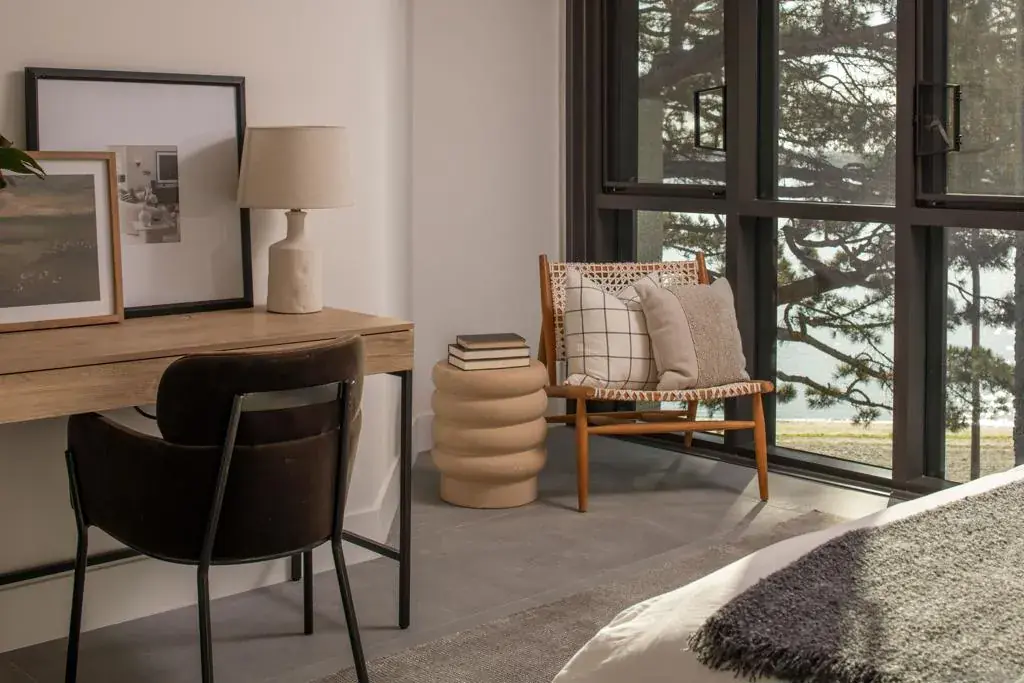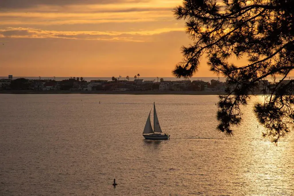 Perched on the top floor of Bay Scene directly on Sail Bay, this rare residence offers one of the most coveted view lines in the community — sweeping western-facing bay vistas with ocean views beyond. Spanning 1,559 square feet, this completely remodeled 2-bedroom, 2-bath home is the ultimate coastal retreat, blending sexy Hawaiian-inspired design with modern beachfront luxury. The open living space is anchored by a dramatic stone-clad fireplace and flows seamlessly into a show-stopping kitchen featuring brand-new contrasting black and warm wood-tone cabinetry, lava rock leather-finish countertops, and sleek black Café Series appliances. Designed for both entertaining and everyday living, the layout captures breathtaking sunsets and shimmering water views from nearly every room. The primary suite is a true sanctuary with a walk-in closet and a spa-inspired bathroom showcasing gorgeous tile work, a Restoration Hardware vanity, and West Elm lighting. The guest bathroom is equally refined with elevated finishes throughout. A dedicated laundry room and generous storage complete the home’s effortless functionality. Residents enjoy resort-style community amenities including a pool, spa, outdoor showers, barbecues, recreation room, and fitness room — perfect for relaxing, entertaining, and embracing the coastal lifestyle. Whether as a full-time residence or the perfect lock-and-leave second home, this home delivers an unparalleled Sail Bay lifestyle — where every day feels like a luxury beachfront getaway.