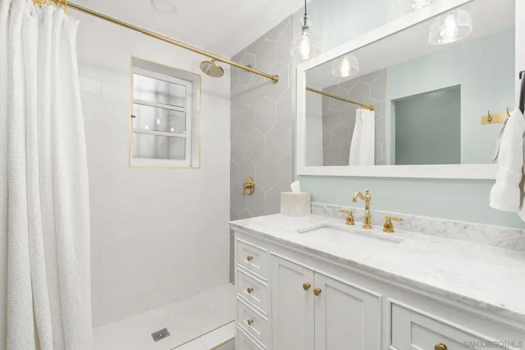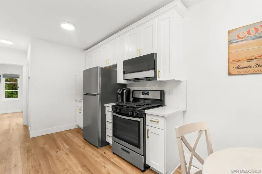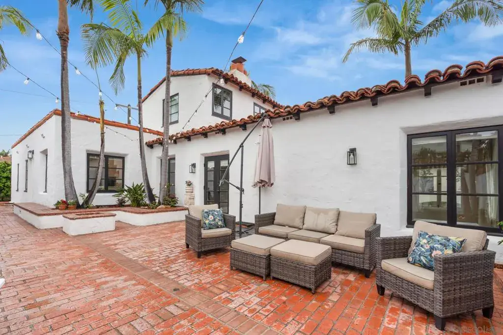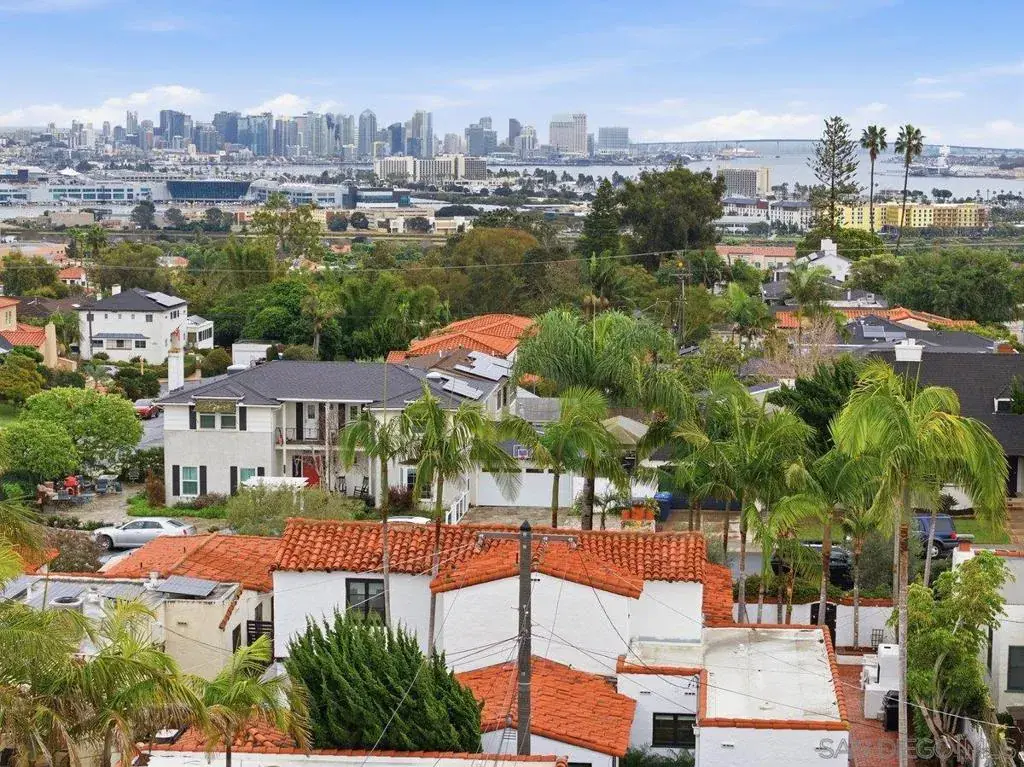 This breathtaking Loma Portal residence seamlessly blends understated minimalist elegance with timeless Spanish character. Set on an expansive 7,000 sq. ft. lot and just moments from Liberty Station and top-rated schools, the home offers an exceptional coastal lifestyle. A sun-drenched formal living room is framed by a dramatic arched picture window set against a tiled accent wall, while rich wood flooring and exposed beam ceilings create warmth and architectural distinction. A striking see-through fireplace anchors the space and transitions seamlessly into the beautifully updated chef’s kitchen, appointed with stainless steel appliances, an impressive eight-burner gas range, custom cabinetry, and a classic designer backsplash, crafted for both elevated entertaining and everyday living. Designed for comfort and flexibility, the home features three en-suite bedrooms, including a serene primary retreat on the main level complete with its own fireplace, custom walk-in closet, spa-inspired bath with tiled walk-in shower, and sliding doors opening to a peacefully landscaped private yard. Upstairs, an additional suite and a secondary bedroom with a generous view deck capture sweeping vistas of the Coronado Bridge, ocean glimpses, and city skyline. A gated courtyard enhances the indoor-outdoor lifestyle with a built-in pizza oven and fire pit, while the attached casita, featuring its own entrance, living room, kitchenette, bedroom, and full bath offers ideal accommodations for guests, office, rental or multigenerational living. Additional highlights include central air conditioning and heating, and an extended driveway accommodating up to four vehicles plus an attached 2-car garage with storage, all just minutes from Sunset Cliffs, beaches, dining, and freeway access. Don’t miss the opportunity to experience the unparalleled blend of style, charm, and convenience that this home offers.