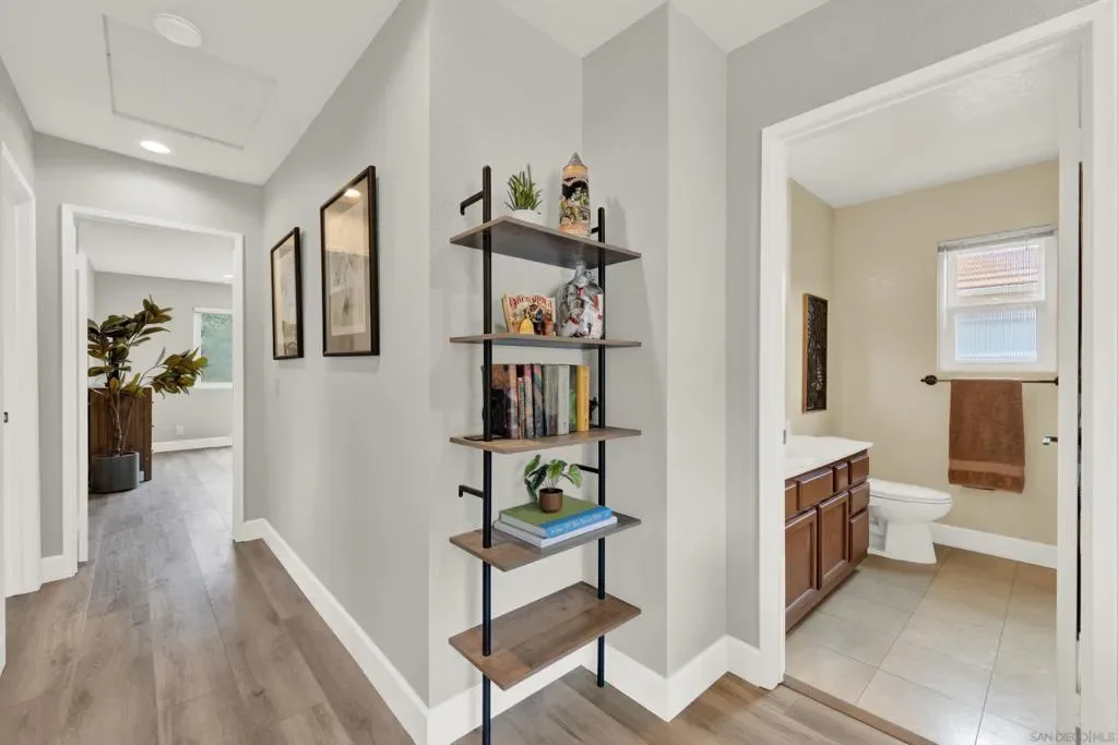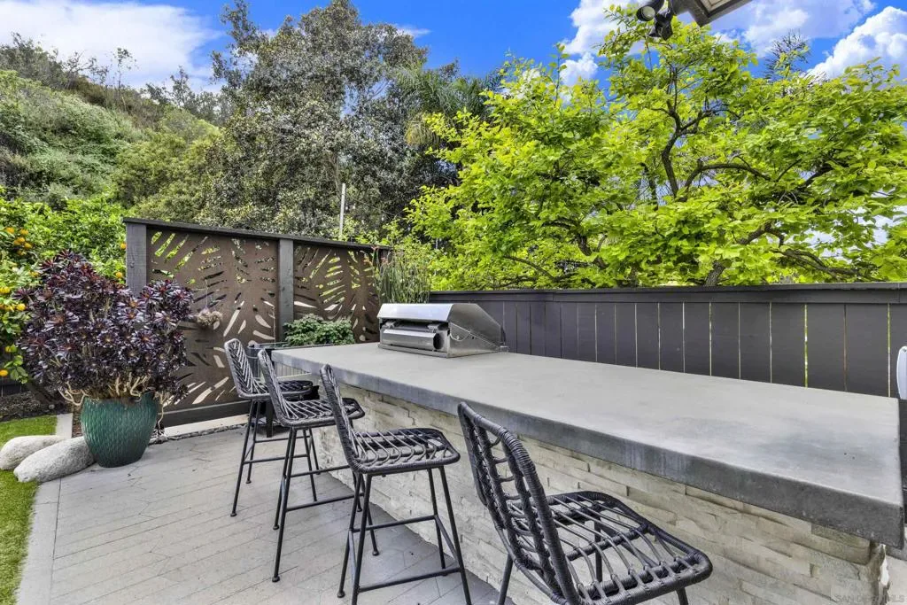 Nestled in the heart of Rancho Bernardo in the highly desirable neighborhood of Camino Bernardo, this thoughtfully upgraded residence blends comfort, style, and intentional design throughout. With no neighbors behind and backing up to open space, this exquisite home features a backyard that is an entertainer’s paradise. Step outside to a beautifully curated backyard designed for both relaxation and entertaining complete with custom dusk to dawn light scaping completed in 2021. Owned 15 panel, 390w/each solar system with Tesla Powerwall 3 (installed in June 2024) + 240V for EV charging in the garage. Enjoy low-maintenance turf, mature fruit trees, a cozy fire pit, and dual patio covers that create multiple outdoor living spaces. The fully equipped outdoor area includes a built-in BBQ and mounted TV, ideal for hosting or unwinding under the San Diego sky. Wide-plank flooring in soft grey hues flows seamlessly across the home, OWNED solar system, the HVAC system has been thoughtfully upgraded approximately two years ago, and updated dual-glazed vinyl windows throughout the home increase energy efficiency and comfort. The primary suite is a true retreat—designed for tranquility and indulgence—featuring a spa-inspired bathroom and dual closets, including an expansive walk-in and a secondary closet, blending function with contemporary elegance. Elegant built in cabinets adorn the walls of the living spaces by the garage, giving the home an elevated, yet wholesome, feel throughout. Kitchen is a chef’s paradise; complete with SS appliances, a plethora of storage cabinets, soft close cabinetry, oversize kitchen island, an abundance of countertop space, and a designated bar area for additional sitting and entertaining. The gorgeous floor to ceiling fireplace perfectly situated off the dining room and kitchen completes the aesthetic of the home. Generous half bath downstairs provides comfort and ease for guests. The Camino Bernardo HOA includes a pool and spa. Ideally situated by freeway access, trails, and located in the highly desirable Poway Unified School District, this delightful, well-cared for, and intentional home checks all the boxes. Come see it today, before it’s too late!