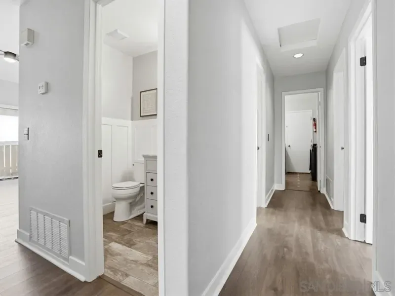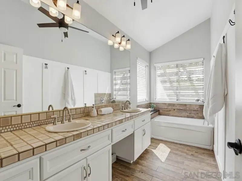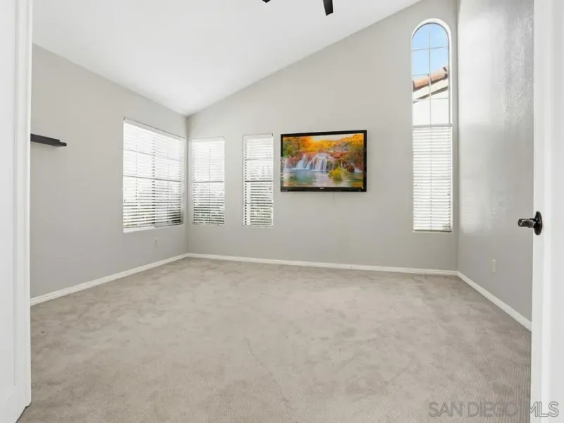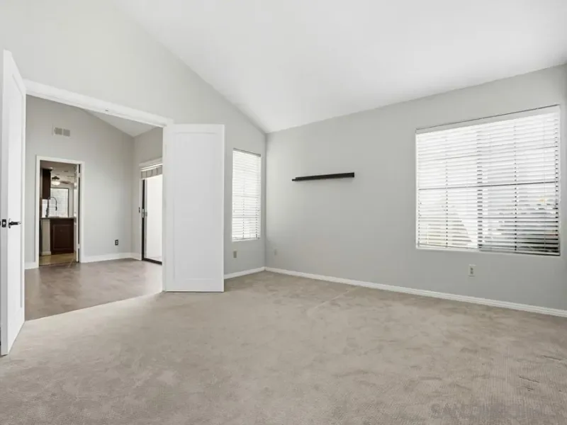 Charming single-story home in the highly desirable Bernardo Heights community featuring an open floor plan, vaulted ceilings, and abundant natural light. The flexible layout offers great potential for multigenerational living, a home office, or additional income opportunities. The kitchen features granite countertops, stainless steel appliances, and rich dark wood cabinetry, and opens to a bright dining area surrounded by large windows. The adjoining living room features a cozy fireplace, creating an inviting space for everyday living and entertaining. See supp for more The spacious primary suite boasts vaulted ceilings, luxury plank vinyl flooring, and a large walk-in closet. The primary bathroom offers dual sinks, a relaxing soaking tub, separate walk-in shower, and stylish tile flooring. Two additional bedrooms provide comfortable accommodations, while a converted front room makes an ideal home office, gym, or bonus space. The single-car garage has been converted into a bedroom with closet and carpeting. The two-car garage is currently carpeted and can function as additional living space while still retaining the operational garage door for easy conversion back to a traditional garage. The home has copper pipes throughout and a tankless water heater as well as a new furnace. Residents enjoy access to the Bernardo Heights Community Center with a heated Olympic-sized pool, tennis and pickleball courts, fitness center, sauna, and event facilities. Ideally located near top-rated Poway Unified schools, Carmel Mountain Ranch shopping, dining, and convenient freeway access. Additional information regarding the garage conversion: The converted garage is designed for comfort and functionality, featuring insulated walls and ceiling for soundproofing and year-round temperature control. It also equipped with forced air. The original wooden garage door is also insulated and lined on the interior with a soundproof panel. When the door is down it is an insulated wall, making it a livable room. An attic provides additional storage, accessible via a pull-down ceiling panel with a built-in folding ladder. The furnace and electric water heater are enclosed behind a dedicated door, with lighting controlled by a switch. There is a door in the garage leading to the side of the house. There is another enclosed storage area next to the large garage door that is lighted.