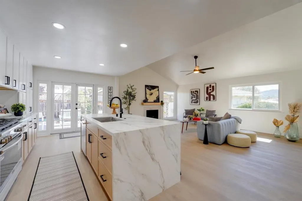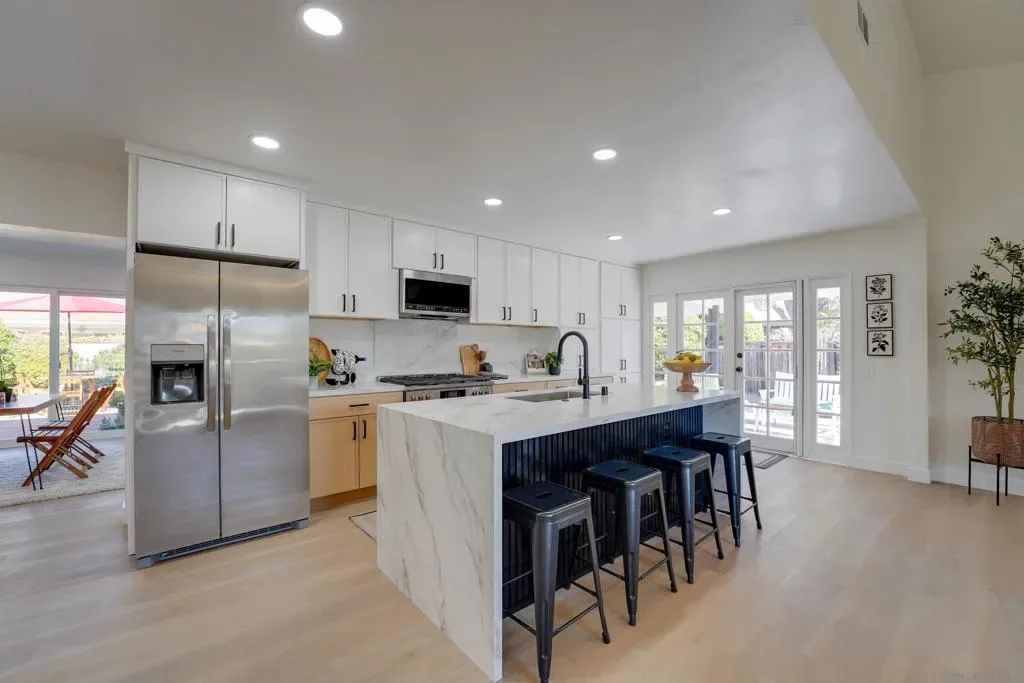 Welcome to this completely remodeled spacious home that pairs fresh, modern finishes with the charm of distinguished Seven Oaks 55+ community in Rancho Bernardo. Set on a quite cul-de-sac with an oversized lot and views of the local mountains. Inside, you will find 3 bedrooms and 2 baths with a bonus room which could be used as a 4th bedroom, office or den. The home boasts open concept living with high vaulted ceilings in the living room, kitchen island with waterfall edges, custom kitchen cabinets, and brand new stainless steel appliances. Multiple french and sliding doors bring the outside in. Perfect for relaxing, gardening and entertaining. Conveniently located minutes from the Seven Oaks community center which includes pickleball, a fitness center, pool, community events and much more. This is a must see!