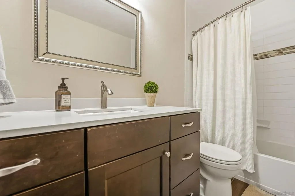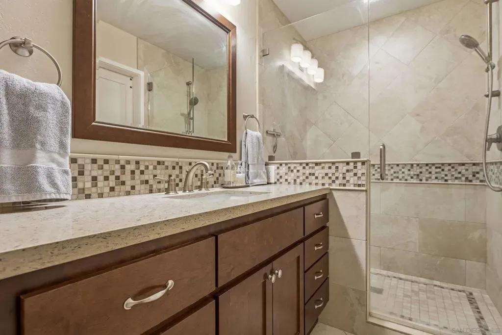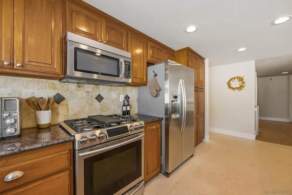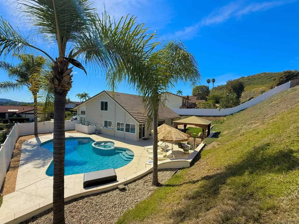Welcome to 12388 Reata Ct, a privately situated and extensively renovated residence on a quiet cul-de-sac in Rancho Bernardo, San Diego. Offering 5 bedrooms, 3 bathrooms, and approximately 2,368 square feet, this home blends modern sophistication with effortless California living and timeless elegance. The property sits on a nearly half-acre lot, providing exceptional space and privacy. Wide-plank hardwood flooring, custom baseboards, and limestone tile elevate the interiors, while abundant natural light enhances the open, airy flow. The remodeled main-level bath features a sleek walk-in shower, and a finished expansion adjacent to the upstairs bedroom provides versatile space for a lounge, office, or media retreat. The garage boasts beautifully finished polished epoxy flooring and is thoughtfully equipped with a Tesla EV charging station. The backyard delivers a private resort experience with a redesigned pool, updated tile, spa extension, expanded deck, custom retaining walls, and a stylish gazebo perfect for entertaining or serene relaxation. Professionally installed turf in the front and rear yards pairs beautifully with a cobblestone driveway and walkway, creating exceptional curb appeal. Major upgrades include a new concrete tile roof, upgraded and relocated electrical panel, and an owned solar system designed to exceed projected energy use under Net Metering 2, combining luxury with efficiency and sustainability. Every detail has been thoughtfully curated to offer comfort, style, and turnkey living. Enjoy exclusive access to the prestigious Rancho Bernardo Swim & Tennis Club — a premier community amenity offering tennis, pickleball, swimming, fitness facilities, and vibrant social events. This private club enhances the Rancho Bernardo lifestyle with resort-style recreation, beautifully maintained grounds, and year-round activities for all ages. A true value-add to living in this sought-after neighborhood.