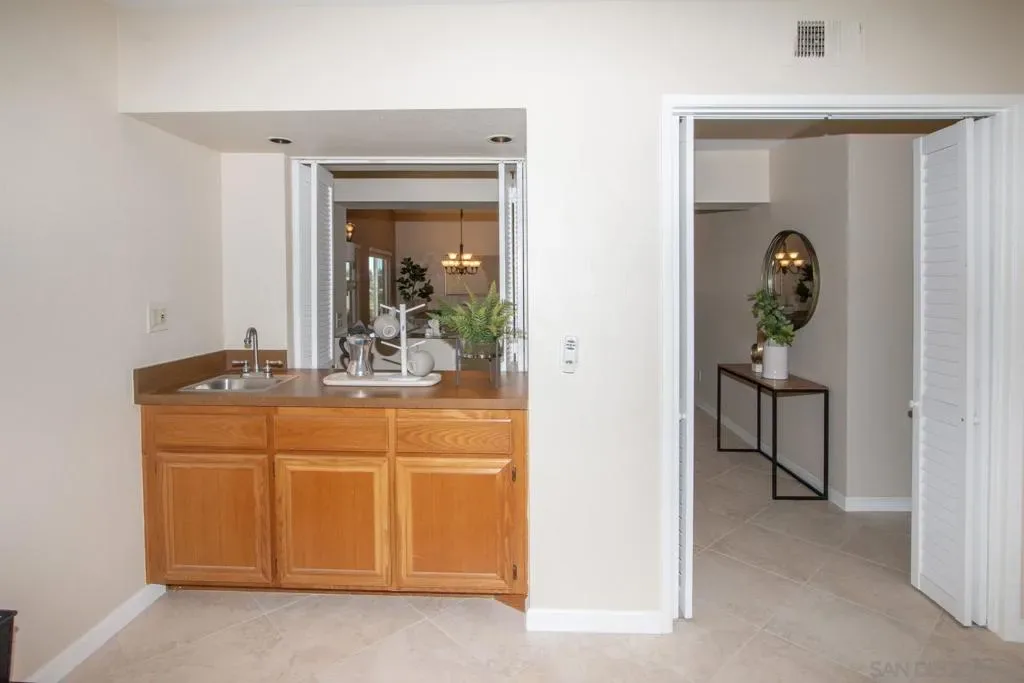 Ideally situated 55+ community of Oaks North Villas. Multiple dual paned windows, plantation blinds, afford splendid views N, E, and S. Sit back on your patio and enjoy your BBQ, coctails, coffee, and then lift some weights. What about sme Tai Chi? Just steps from your new home you’ll access winding, beautifully manicured paths for walking and jogging, with benches for contemplating the exquisite golf courses. This community is just a roll or a stroll from Oaks North Community Center, Golf Courses, Historic Bernardo Winery, Lake Hodges, and the Mall. Easy access to freeways in all directions.