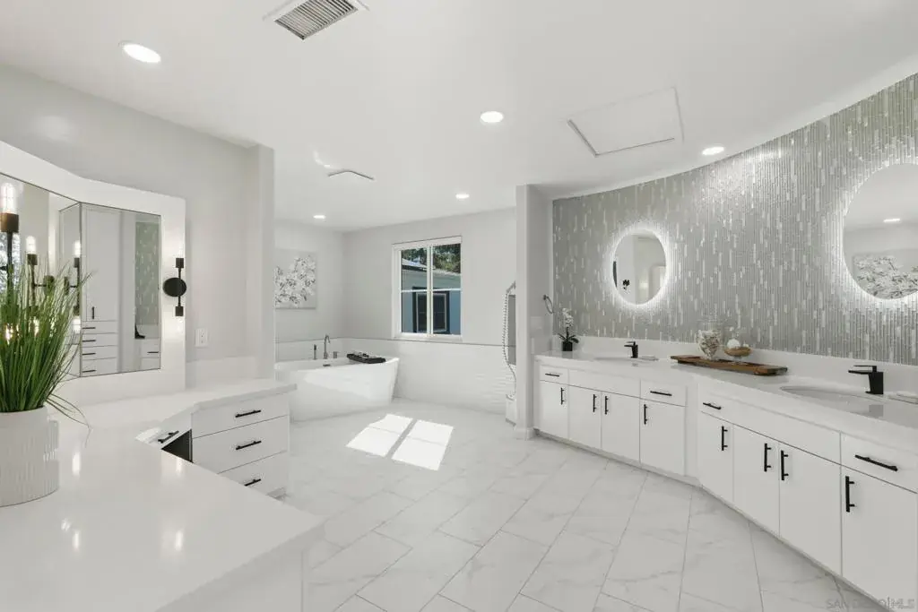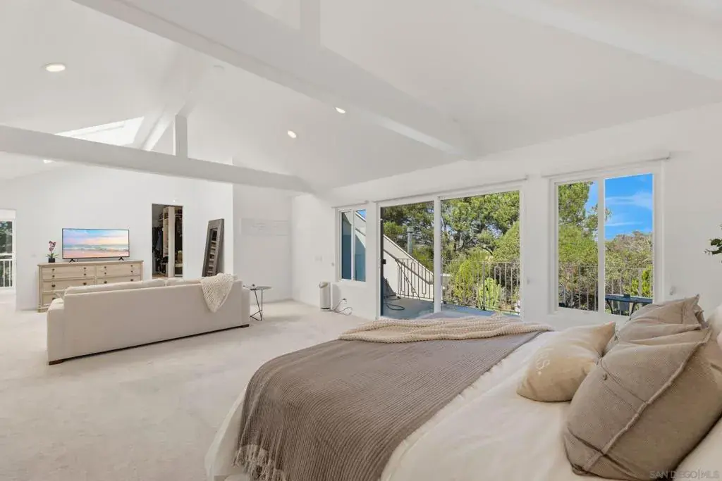 Set on a private 1-acre lot with sweeping mountain views, this exceptional estate offers a rare blend of privacy, space, & natural beauty. A circular driveway beneath a canopy of mature trees creates a dramatic arrival, welcoming you into a home filled with light, soaring vaulted ceilings, & architectural character. The main living space centers around a striking copper hood fireplace, while expansive windows frame the surrounding landscape. The chef’s kitchen overlooks the pool & grounds, creating a seamless connection between indoor living & outdoor entertaining. The primary suite serves as a peaceful retreat with a private balcony & mountain views, while a spiral staircase leads to a spacious bedroom or bonus space ideal for guests, a home office, or studio. Additional highlights include a temperature-controlled wine cellar, four-zone HVAC, three AC units, & two tankless water heaters. Outside, the grounds feel like a private resort with lush lawns, mature trees, natural boulder accents, a sparkling pool, & firepit. Minutes to Rancho Bernardo, 4S Ranch, Del Sur, & North County Mall. Set on 1-acre with sweeping mountain views, this remarkable estate offers a rare sense of privacy & natural beauty. A circular driveway beneath a canopy of mature trees creates a dramatic approach, leading you to a home that feels both secluded & welcoming within an established neighborhood where every property has its own character. Inside, soaring vaulted ceilings & expansive windows create a light-filled interior that feels both grand & inviting. Main living space is anchored by a striking copper hood fireplace, adding warmth & architectural character while natural light pours in from every angle. The chef’s kitchen overlooks the pool & surrounding grounds, seamlessly connecting indoor living with outdoor entertaining. Whether hosting gatherings or enjoying quiet evenings, the layout was designed to bring people together. The primary suite offers a private sanctuary with its own balcony overlooking the mountains. A spiral staircase leads to a spacious bedroom or bonus retreat, ideal for guests, a home office, or studio. Additional highlights include a temperature-controlled wine cellar, four-zone HVAC, three AC units, & two tankless water heaters. The grounds feel like a private resort with lush lawns, mature trees, & natural boulder accents. Paver-lined patios surround the sparkling pool & firepit, creating inviting spaces to relax & take in the views. Just minutes from Rancho Bernardo, 4S Ranch, Del Sur, & North County Mall with easy access to dining, shopping, & everyday essentials. A rare opportunity to experience space, nature, & refined living.