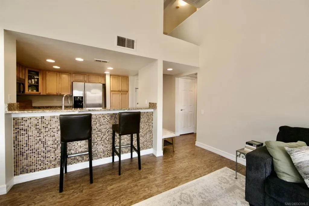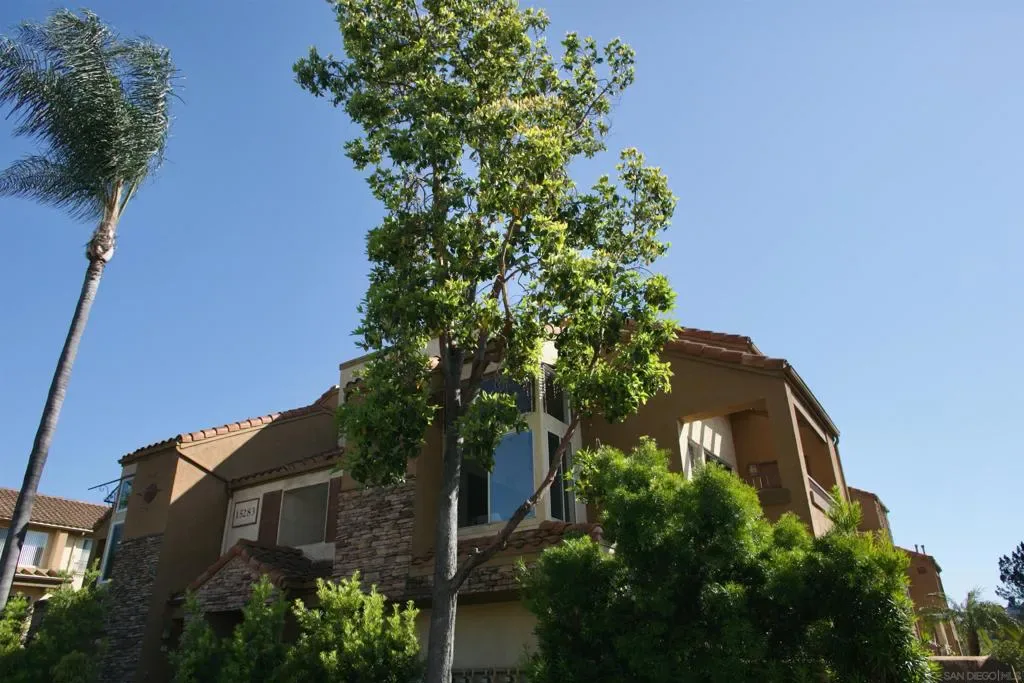 Bright, Spacious Corner Unit in Highly Desirable Villa Taviana Community! Welcome to this beautifully maintained upper-level corner unit in the sought-after Villa Taviana community of Rancho Bernardo! Flooded with natural light and soaring vaulted ceilings, this home offers a bright, airy atmosphere and a true sense of space and comfort. Step into the open-concept main living area, featuring durable hardwood floors, fresh neutral paint, and central heating and air conditioning. The outward-facing kitchen is perfect for hosting, with granite countertops, stainless steel appliances, recessed lighting, and a bar-height breakfast counter that opens seamlessly to the living and dining spaces—ideal for entertaining or everyday living. Enjoy the privacy of a split-level floor plan with the primary suite upstairs, complete with dual closets and an en-suite bathroom. Additional conveniences include in-unit washer and dryer, reverse osmosis water filtration, and a private balcony patio with extra outdoor storage. Two parking spaces – all appliances included – Move-in ready condition – Dog-friendly community with pet stations and lawn areas. Resort-style amenities: pool, spa, gym, dance studio, clubhouse, tennis courts, EV charging stations, BBQ area, and playground. Set in a quiet, safe, family-friendly neighborhood, this home is just minutes from Carmel Mountain Plaza (Costco, Trader Joe’s, shopping, dining) and 4S Ranch, with quick access to parks, golf, and I-15. Tenant-occupied: 24-hour notice required for showings. Contact listing agent for details.