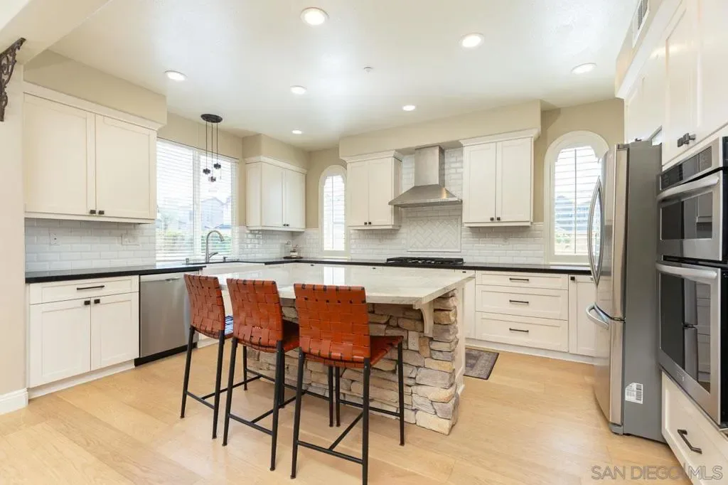 “This feels like a model home”—and it truly lives up to that impression. From the moment you enter, you’re welcomed by refined, designer finishes and a bright, open-concept layout that blends modern style with everyday comfort. * The thoughtfully designed floor plan flows seamlessly into a private backyard retreat, featuring a saltwater pool with a spillover spa that will get your attention. Whether enjoying the sun on the spacious deck or relaxing under the covered patio, this outdoor space is ideal for entertaining and creating lasting memories. * At the heart of the home, the kitchen is both functional and beautifully appointed, showcasing a large center island, white shaker cabinetry, tile backsplash, farmhouse sink, and expansive granite countertops—perfect for cooking and gathering. Abundant natural light throughout enhances the home’s move-in-ready appeal. * A generous first-floor bonus room provides flexible living options—ideal as a home office, playroom, or additional bed/family space to suit your lifestyle. Situated in a quiet cul-de-sac on a corner lot with your own fruit trees, the property also features owned PV solar for energy efficiency and solar heating for the pool. Located in desirable 4S Ranch, this home offers convenient access to the Sports Park and is within walking distance to the highly acclaimed Poway Unified School District. * Starting at $1,988,000 this home is a gem!