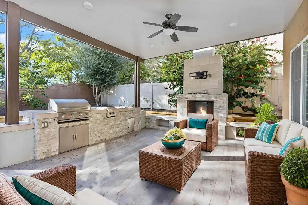“Welcome to this beautifully upgraded east facing home located on a quiet cul-de-sac in the highly desirable 4S Ranch / Del Sur area of San Diego, within the award winning Poway Unified School District. Designed for both comfort and functionality, this spacious home offers an open concept layout, high ceilings, and a perfect blend of modern updates, flexible living spaces, and an entertainer’s backyard. Located close to top rated schools, parks, shopping, and dining, this home offers incredible value, lifestyle, and versatility in one of San Diego’s most sought-after communities. The light filled remodeled kitchen features quartz countertops and a large island with seating, ideal for everyday living and entertaining. Additional upgrades include new flooring upstairs, a fully remodeled bathroom, new blinds throughout the main floor, and a tankless water heater. Home has Solar. A downstairs bedroom currently used as a home office with a full bathroom on the main level offers excellent flexibility for guests or work from home needs. Upstairs includes four bedrooms and a convenient laundry room. An additional bathroom was added by the owner without permits. Buyer to verify all information including square footage, and property details. The backyard is a true highlight perfect for entertaining and relaxation featuring a built-in BBQ, outdoor fireplace with TV wall mount, multiple seating areas, and a basketball area. In addition, the garden includes Pomegranate, Orange, and Avocado trees, along with Moringa and Curry leaf plants, creating a productive outdoor retreat.