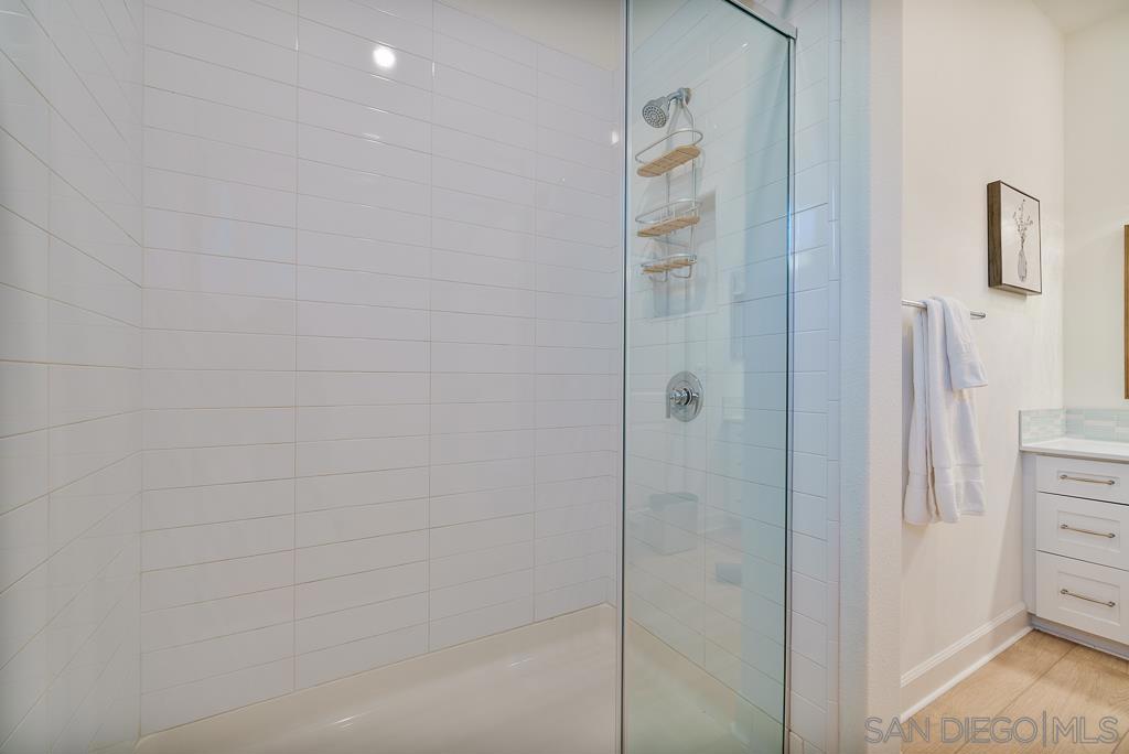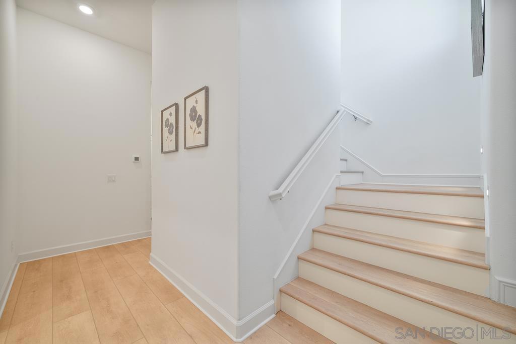 AVANTE IS A 55+ COMMUNITY. Coastal modern luxury meets effortless living in this FULLY RENOVATED 3 bd/3 ba home in the heart of Del Sur. ONLY AVANTE FLOOR PLAN WITH A FULL BEDROOM & BATHROOM DOWNSTAIRS – perfect for guests, a caretaker, or an office/flex space. Indulge in 1,688 sq. ft. of French LVP flooring, fresh warm white interior paint, and designer upgrades at every turn. Take the stairs or your own private elevator to the open-concept main level, filled with natural light. The kitchen features modern… gray quartz countertops, white shaker cabinetry, sleek glass tile backsplash, glass display cabinets, European soft-close drawers, and a stainless steel G.E. appliance package. Brushed brass pendant lighting & a statement chandelier elevate the space. A private open-air balcony is perfect for morning coffee or sunset lounging. The spacious primary suite features crown molding, a custom built-in walk-in closet, and a spa-inspired bath with designer mosaic backsplash, arched wood-frame mirror, upgraded lighting, and a new Toto bidet toilet. Quartz countertops, modern fixtures, and designer tile finishes fill all bathrooms. Smart home features include a Schlage keyless entry, Honeywell smart thermostats, enhanced WiFi connectivity, a new smart G.E. washer/dryer, & more. Pristine water here comes from a new whole-house water softener, and a 5-stage reverse osmosis water filtration system. Take advantage of the Avante clubhouse, pool & spa, fire pit, BBQ areas, and calendar of resident events. Part of the master Del Sur community, with access to its parks, pools, & trails. Walkable to Del Sur Town Center. Come see this true gem!