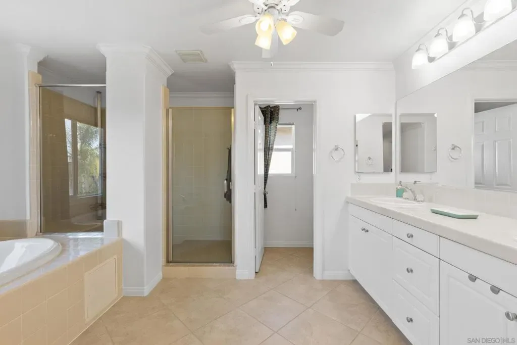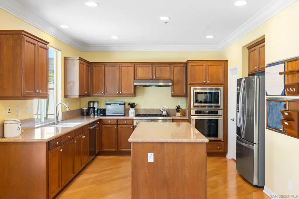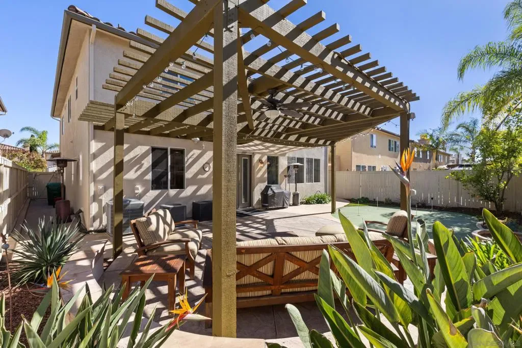 Located in a highly sought-after 4S Ranch neighborhood within the award-winning Poway Unified School District, this upgraded home features owned solar, a highly desirable floor plan, and seamless indoor-outdoor living. The interior showcases 9-foot ceilings downstairs with 8-inch crown molding and engineered pecan wood flooring installed on a diagonal. The downstairs family room offers a cozy fireplace and opens to the chef’s kitchen featuring stainless Thermador appliances, a large center island with Silestone countertops, walk-in pantry, and breakfast area with French doors opening to the backyard. The backyard features beautiful hardscaping, pergola-covered patio, tranquil fountain, and putting green ideal for outdoor living and entertaining. A charming interior courtyard off the dining room provides an additional private outdoor retreat. Upstairs, the primary suite offers crown molding, two walk-in closets, and a spa bath with dual vanities, soaking tub, and large walk-in shower. One secondary bedroom is ensuite, ideal for guests. Additional features include dual-zone AC, custom window treatments, French doors with built-in blinds, ceiling fans, fire sprinklers, upstairs laundry with sink and hanging bar, and a three-car tandem garage. Ideally located near parks, shopping, restaurants, library, hiking trails, and Pioneer Park offering expansive green space, basketball courts, and a splash pad. Exceptional 4S Ranch location within the award-winning Poway Unified School District, this beautifully upgraded home offers owned solar for energy efficiency and cost savings, a highly desirable floor plan, elegant finishes, and outstanding walkability to parks, shopping, restaurants, and community amenities. The spacious interior features soaring 9-foot ceilings downstairs with impressive 8-inch crown molding and engineered pecan wood flooring installed on a diagonal. The downstairs family room offers a warm and inviting fireplace and flows seamlessly into the chef’s kitchen showcasing stainless Thermador appliances, a large center island with Silestone countertops, a generous walk-in pantry, and a spacious breakfast area with French doors opening to the backyard. A downstairs bonus living room overlooking the charming interior courtyard makes an ideal work-from-home office. The beautifully designed backyard features gorgeous hardscaping, a pergola covered patio, tranquil fountain, and putting green creating an ideal setting for outdoor living and entertaining. The home also offers a charming interior courtyard off the dining room providing an additional private outdoor retreat. Upstairs, the very large primary suite features crown molding, two walk-in closets, and a spa-inspired bath with dual vanities, soaking tub, and large walk-in shower. One secondary bedroom is ensuite, offering excellent flexibility for guests or family members. Additional features include dual-zone air conditioning, custom window treatments throughout, French doors with built-in blinds within the glass, ceiling fans, built-in fire sprinklers, an upstairs laundry room with sink and hanging bar, and a three-car tandem garage. Ideally located near nearby hiking trails and Pioneer Park offering expansive green space, basketball courts, and a splash pad.