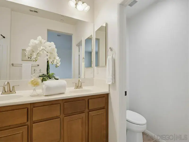 Experience modern living in the heart of 4S Ranch with this stunning, move-in-ready townhome located in the prestigious Poway Unified School District. The main floor welcomes you with durable tile flooring and a chef-inspired kitchen boasting sleek granite countertops, a custom backsplash, and premium stainless steel appliances including a five-burner gas range. The upstairs features new luxury vinyl plank flooring and is designed for comfort and privacy, offering dual primary suites with spacious walk-in closets and dual-sink vanities. Smart home upgrades like a Nest climate system and a Ring security camera offer modern convenience, while the attached two-car garage provides ample built-in storage. Enjoy your private courtyard or take advantage of resort-style community amenities, including a sparkling pool, spa, and outdoor gathering areas. Live where you play—from the scenic trails and sports fields of Patriot Park to the best local shops and eateries, everything you need is just minutes away.