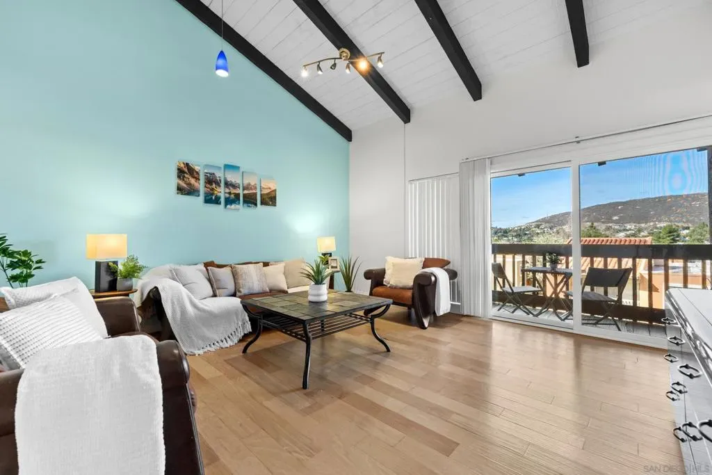 Nothing beats a breathtaking San Diego sunset, from your very own patio! This beautiful 2-bedroom, 2-bath condo is nestled into the highly desirable Rancho Bernardo neighborhood. Located on the second-story, it offers vaulted ceilings with exposed beams, creating an open and airy atmosphere filled with natural light. The functional kitchen seamlessly flows into the open dining area, perfect for entertaining. The spacious primary bedroom offers a large closet, while the en-suite bath boasts elegant marble floors and a marble shower. Located within the award-winning Poway Unified School District and offering easy access to freeways, shopping, and dining, this home is an ideal opportunity for first-time buyers or investors. Don’t miss out—schedule a tour today!