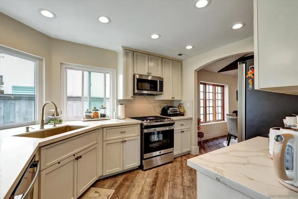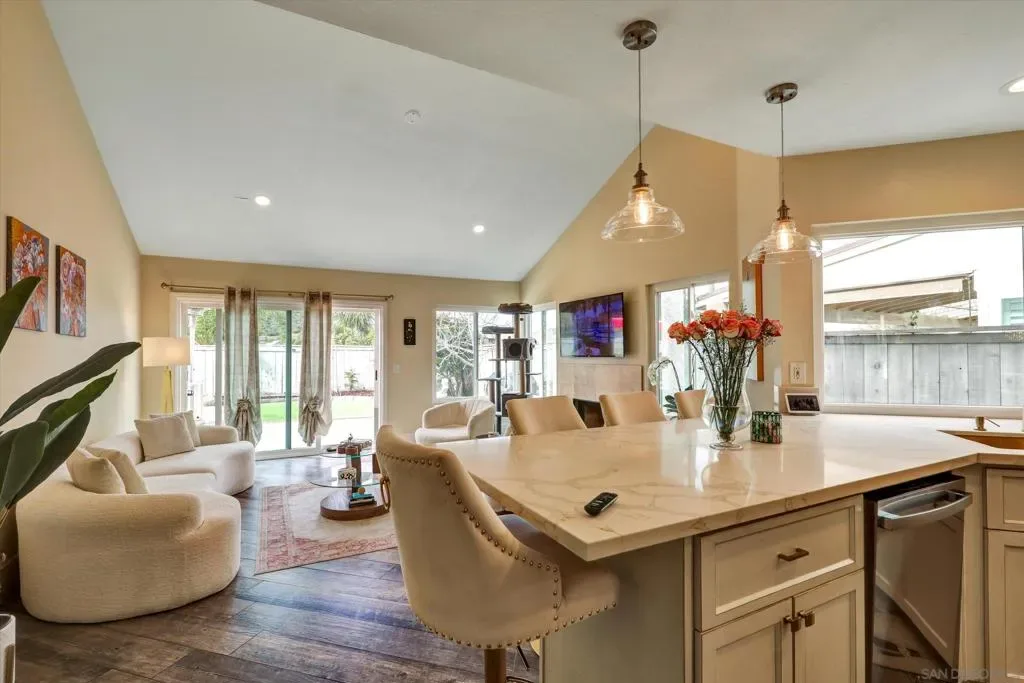 Beautifully upgraded 4 bed, 2 bath single-story home in Rancho Bernardo within the Poway Unified School District. This move-in ready home features quartz countertops, fresh interior paint, recessed lighting throughout, and a modern kitchen with new sink/faucet, stainless steel appliances: new refrigerator and stove/oven. Enjoy prepaid solar, updated wiring, and EV-ready electrical setup for electric vehicle charging. Additional wiring/lighting in the front and backyard. Improvements include newer washer/electric dryer, updated door knobs, and a finished garage with epoxy flooring, drywall, fresh paint, and added ladder storage. Private backyard with mature fig, orange, and passion fruit trees. Convenient location near shopping, parks, trails, and freeway access. Beautifully upgraded 4 bed, 2 bath single-story home in Rancho Bernardo within the Poway Unified School District. This move-in ready home features quartz countertops, fresh interior paint, recessed lighting throughout, and a modern kitchen with new sink/faucet, stainless steel appliances: new refrigerator and stove/oven. Enjoy prepaid solar, updated wiring, and EV-ready electrical setup for electric vehicle charging. Additional wiring/lighting in the front and backyard. Improvements include newer washer/electric dryer, updated door knobs, and a finished garage with epoxy flooring, drywall, fresh paint, and added ladder storage. Private backyard with mature fig, orange, and passion fruit trees. Convenient location near shopping, parks, trails, and freeway access. HOA fee is $50/M and RB Swim & Tennis club $466.50/Y