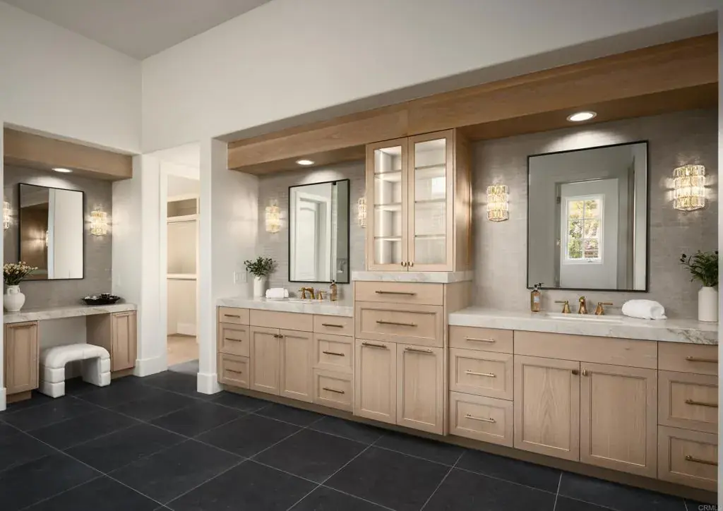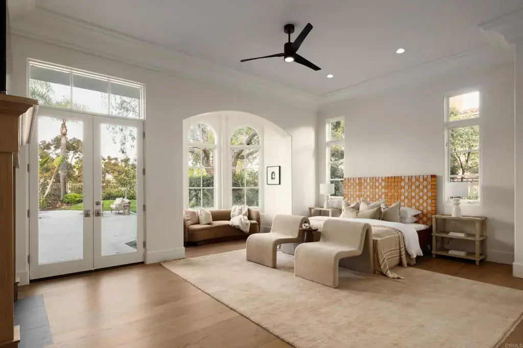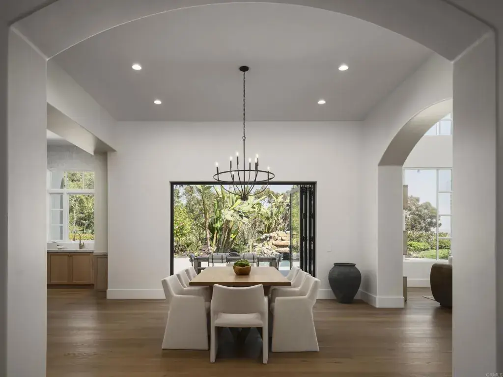 Positioned within the exclusive guard-gated enclave of Rancho Pacifica, 5146 Rancho Verde Trl presents a beautifully reimagined estate where classic architecture meets a crisp, modern refresh. Thoughtfully transformed throughout, the home pairs dramatic volume with refined finishes—soaring ceilings, elegant archways, and walls of windows that flood the interiors with natural light. Wide-plank white oak floors run seamlessly from room to room, setting a warm, elevated tone. The kitchen is the showpiece—fully redesigned for both function and style with custom white oak cabinetry, dual oversized islands, striking quartzite countertops, and a complete suite of new Thermador appliances. A sculptural marble hood detail anchors the space, while the open layout flows effortlessly into the bright family room and sunlit breakfast nook—perfect for casual mornings or hosting with ease. On the main level, the primary suite offers a true retreat, featuring a spa-caliber bath with an expansive wet room, dual shower heads, and two generous walk-in closets designed for everyday luxury. Additional guest bedrooms are spacious and private, each with its own en-suite bath—ideal for family and visitors alike. Set on just over half an acre, the grounds are designed for resort living with lush landscaping, multiple outdoor gathering areas, and a pool and spa that invite year-round enjoyment. Just minutes from Del Mar, premier schools, acclaimed golf clubs, and coastal access, this is a rare opportunity to own a turnkey home in one of the most coveted communities.