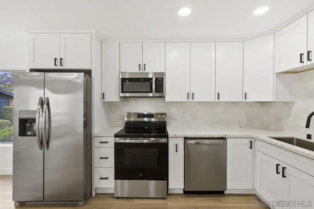 Highly upgraded 2-story, 2-bedroom, 1-bath condo located in the desirable Peñasquitos Villas community, tucked at the end of a quiet cul-de-sac in Rancho Peñasquitos. This thoughtfully remodeled home offers a fresh, modern feel with luxury vinyl plank flooring throughout both levels, wide baseboards, and all-new interior paint-including closets-for a crisp, cohesive look. Refurbished handrail complements the updated staircase, and new \recessed lighting in the dining and living areas enhances the bright and open ambiance. The fully remodeled kitchen is both stylish and functional, featuring all-new cabinets, quartz countertops, a new sink and faucet, new tile backsplash, brand-new appliances, and updated lighting that highlights the quality of the finishes. The adjacent dining area blends seamlessly with the living space, making it ideal for everyday living and entertaining.Upstairs, you’ll find two comfortable bedrooms with ceiling fans and mirrored closet doors. One bedroom overlooks a blooming Jacaranda tree, offering a peaceful touch of greenery just outside the window. The beautifully renovated bathroom includes a new vanity with a quartz countertop, new sink and faucet, new toilet, new tub and fixtures, and a custom tile tub/shower enclosure with a clean, modern finish. Additional features include all-new interior doors, a hallway linen cabinet, an extra upstairs storage closet, and a shared one-car garage. The location is both peaceful and convenient with no road noise. This move-in-ready home combines comfort, quality upgrades, and a great Rancho Peñasquitos locatio Highly upgraded 2-story, 2-bedroom, 1-bath condo located in the desirable Peñasquitos Villas community, tucked at the end of a quiet cul-de-sac in Rancho Peñasquitos. This thoughtfully remodeled home offers a fresh, modern feel with luxury vinyl plank flooring throughout both levels, wide baseboards, and all-new interior paint-including closets-for a crisp, cohesive look. Refurbished handrail complements the updated staircase, and new \recessed lighting in the dining and living areas enhances the bright and open ambiance. The fully remodeled kitchen is both stylish and functional, featuring all-new cabinets, quartz countertops, a new sink and faucet, new tile backsplash, brand-new appliances, and updated lighting that highlights the quality of the finishes. The adjacent dining area blends seamlessly with the living space, making it ideal for everyday living and entertaining.Upstairs, you’ll find two comfortable bedrooms with ceiling fans and mirrored closet doors. One bedroom overlooks a blooming Jacaranda tree, offering a peaceful touch of greenery just outside the window. The beautifully renovated bathroom includes a new vanity with a quartz countertop, new sink and faucet, new toilet, new tub and fixtures, and a custom tile tub/shower enclosure with a clean, modern finish. Additional features include all-new interior doors, a hallway linen cabinet, an extra upstairs storage closet, and a shared one-car garage. The location is both peaceful and convenient with no road noise. This move-in-ready home combines comfort, quality upgrades, and a great Rancho Peñasquitos location.